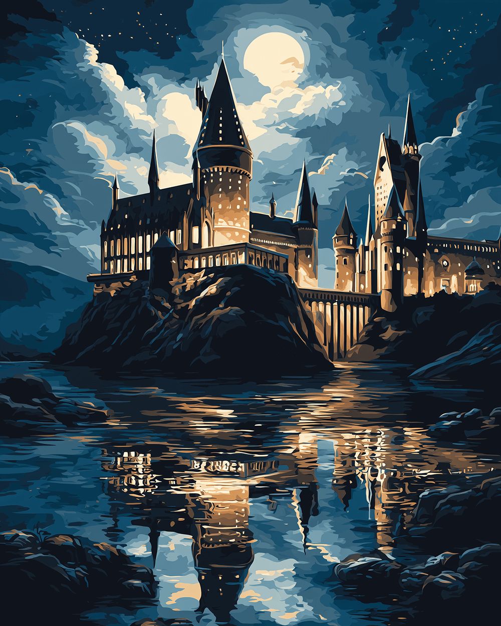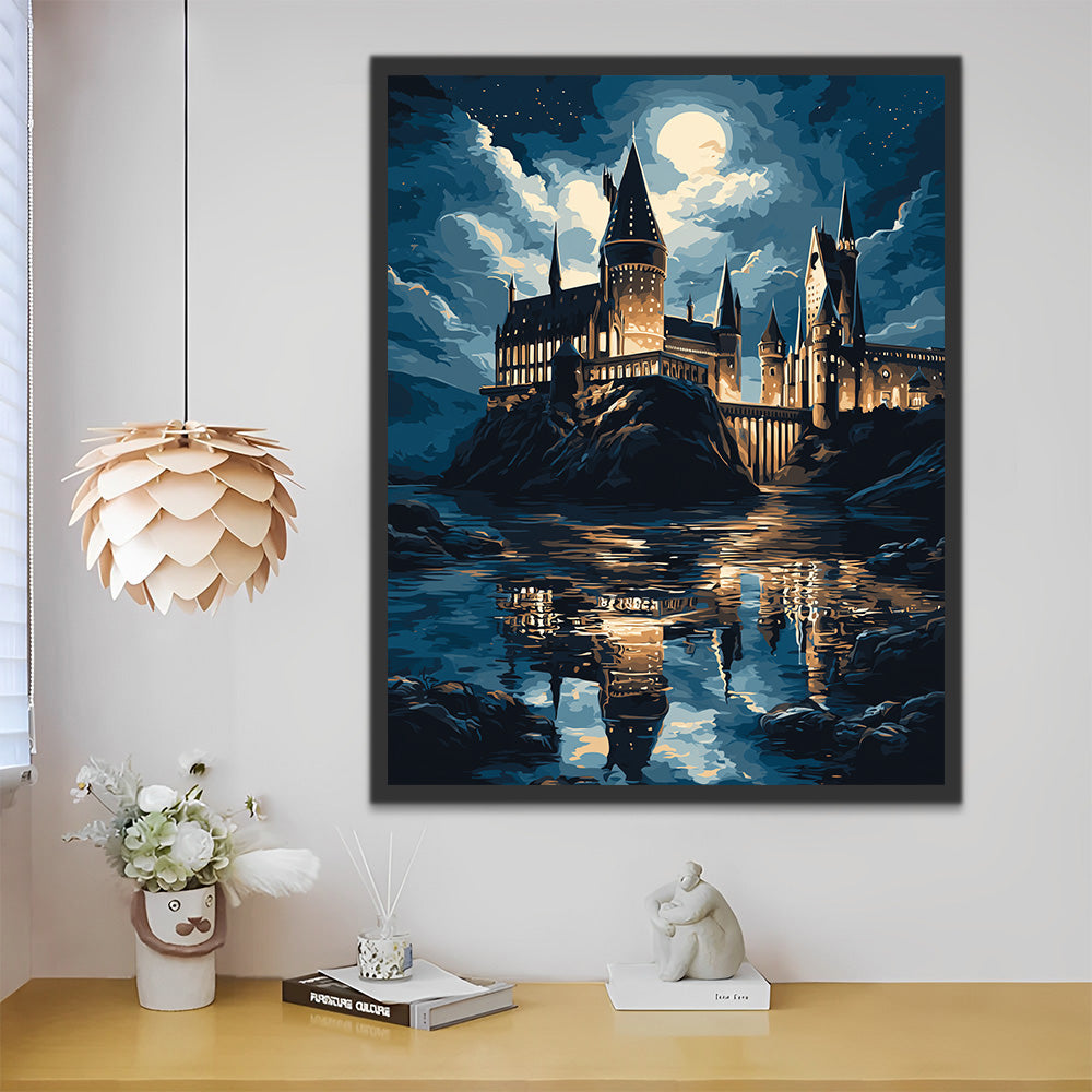 Schloss am Meer unter dunklen Wolken Malen nach Zahlen