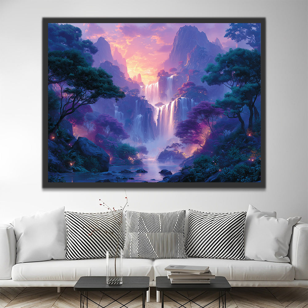 Wasserfall in den Purpurbergen Malen nach Zahlen