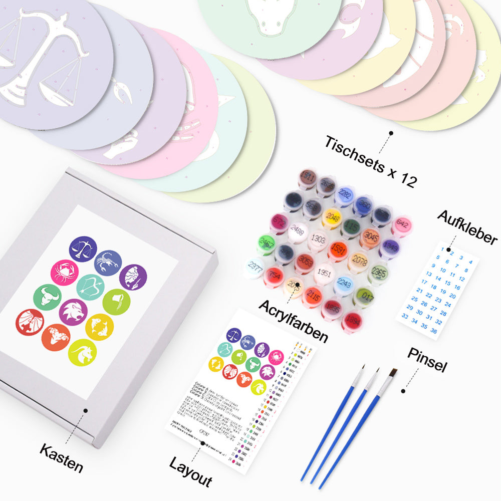 12 Stück Tischsets mit Sternzeichen Malen nach Zahlen