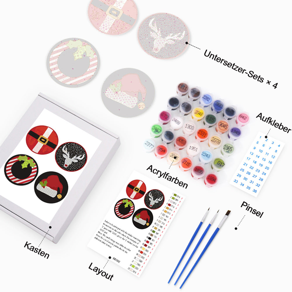 4 Stück Weihnachtskostüme Untersetzer Malen nach Zahlen