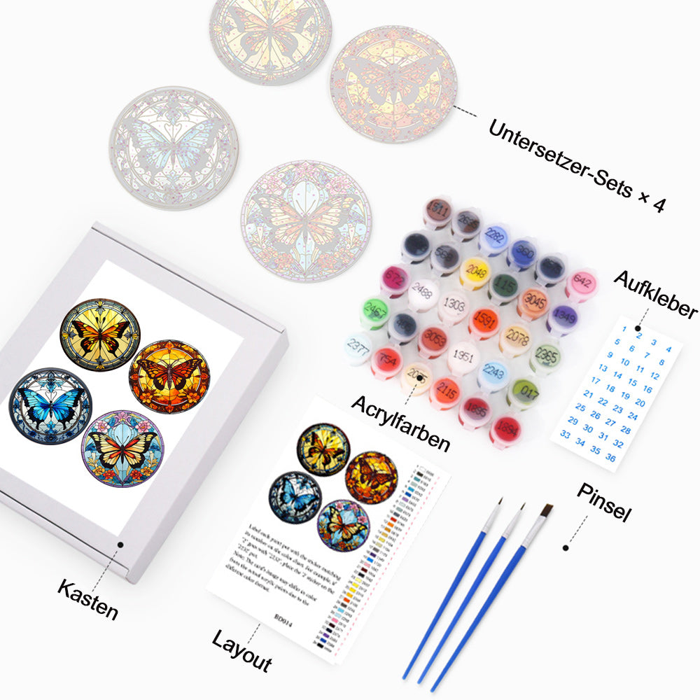 4 Stück Wunderschöne Schmetterlingsuntersetzer Malen nach Zahlen