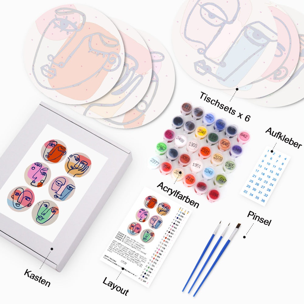 6 Stück Abstrakte Frauengesicht Tischsets Malen nach Zahlen