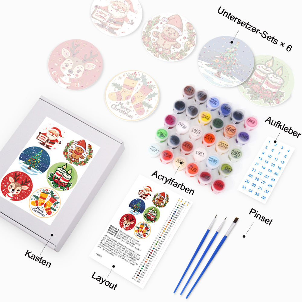 6 Stück Cartoon Weihnachtsuntersetzer Malen nach Zahlen