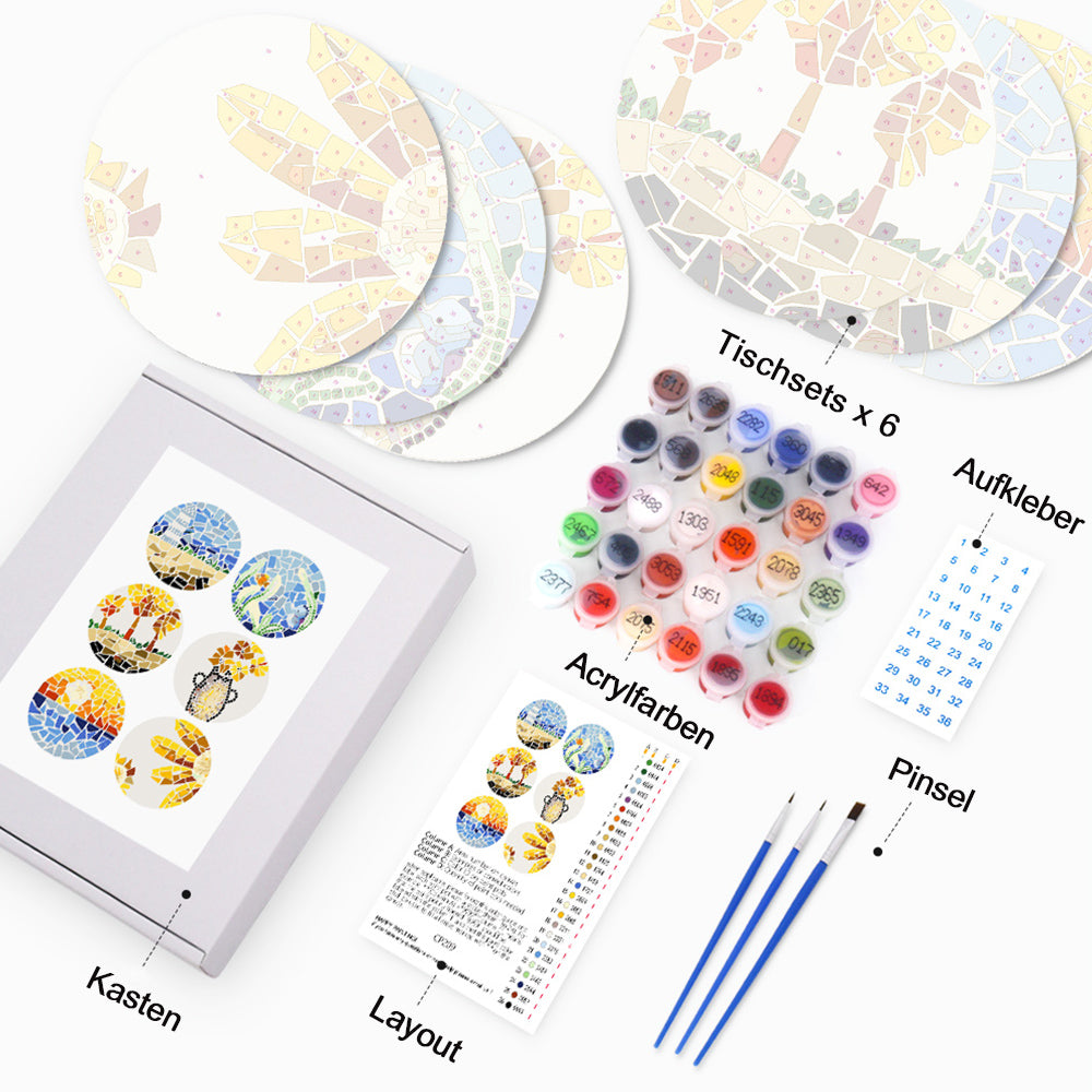 6 Stück Farbblock-Herbstlandschaft Tischsets Malen nach Zahlen