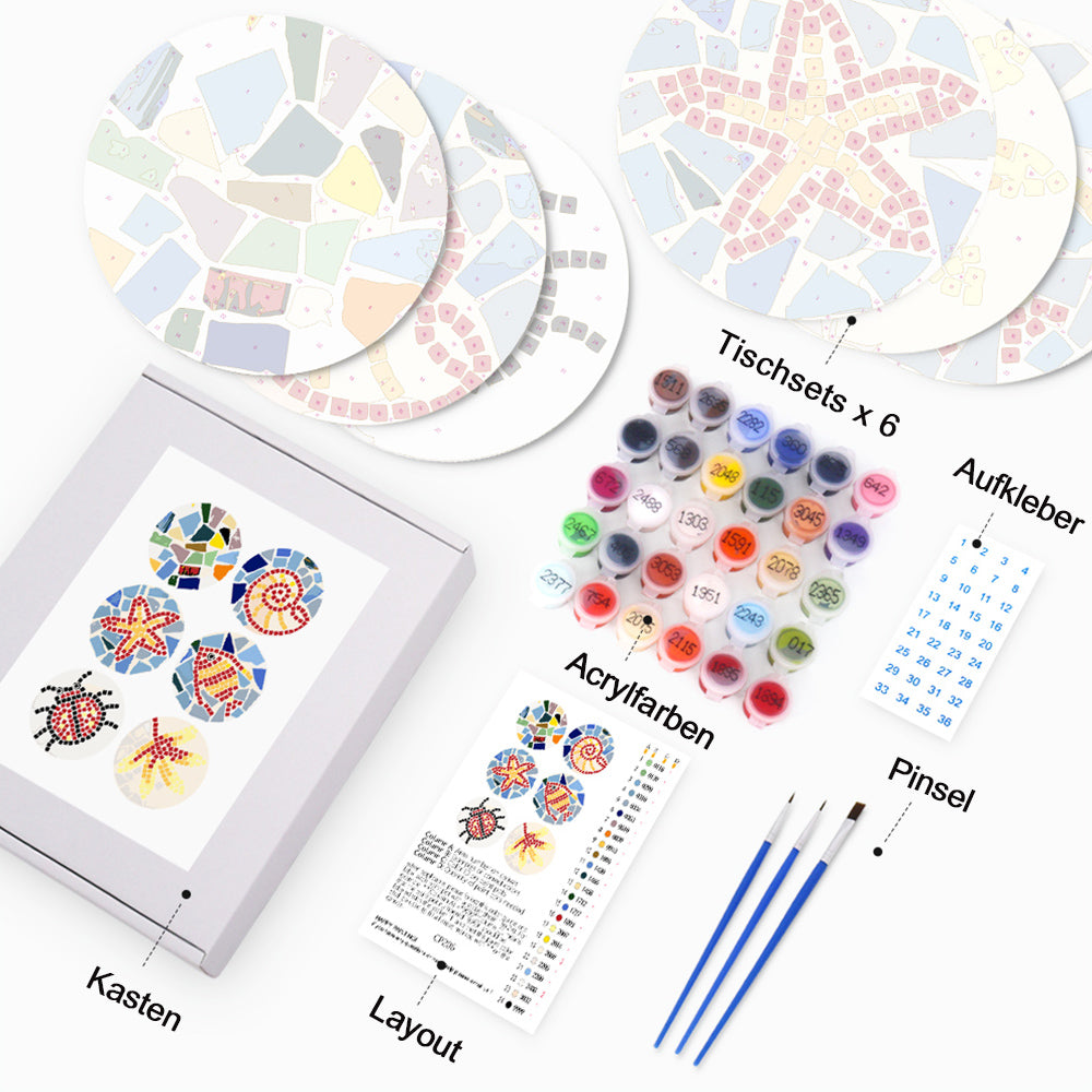 6 Stück Farbenfrohe Insekten Tischsets Malen nach Zahlen