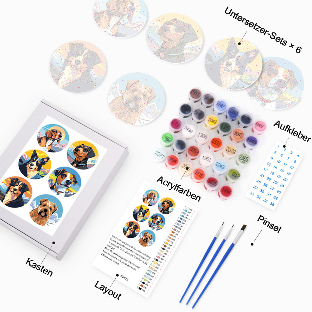6 Stück Hunde und Berge Untersetzer Malen nach Zahlen