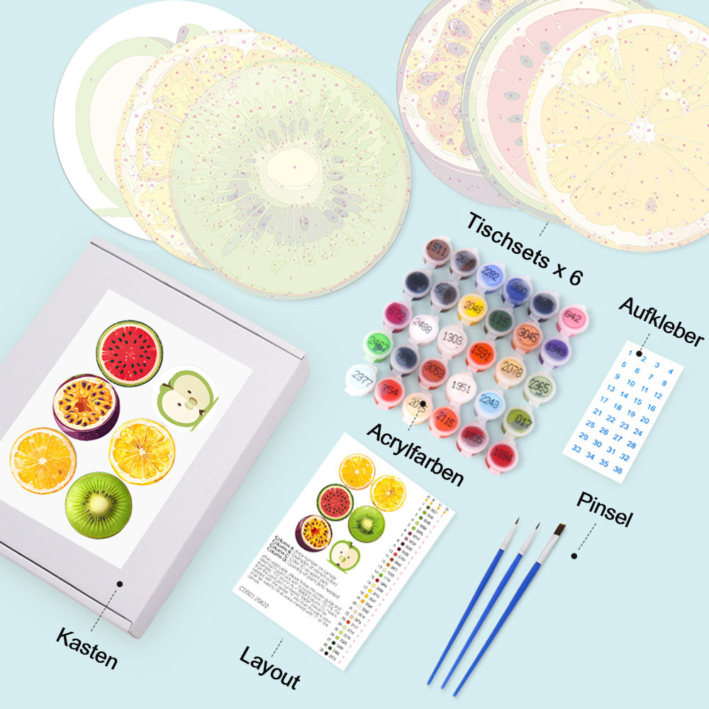 6 Stück Tischsets mit frischem Obst Malen nach Zahlen
