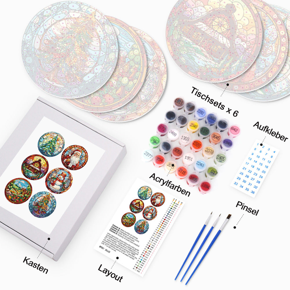 6 Stück Tischsets mit Weihnachtsmann und Weihnachtsbaum Malen nach Zahlen