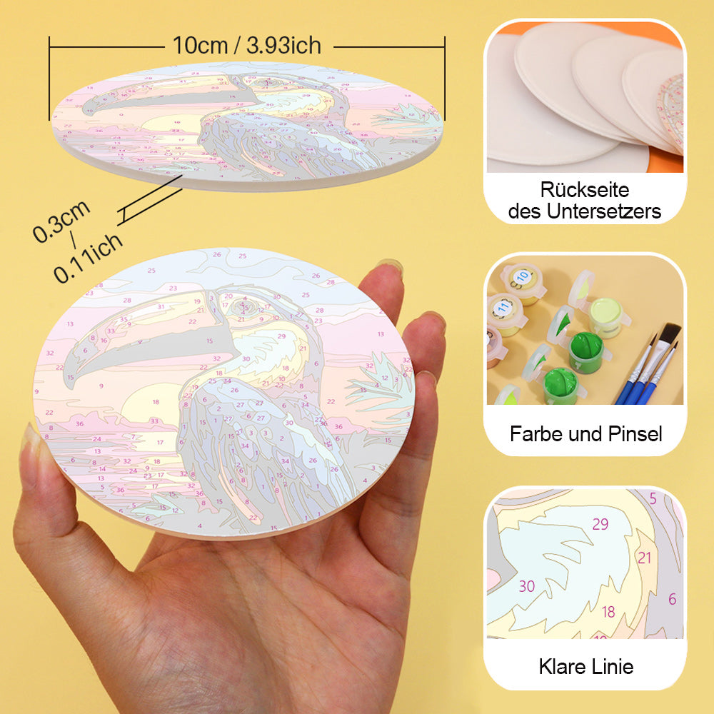 6 Stück Untersetzer mit Fliegenden Tieren bei Sonnenuntergang Malen nach Zahlen