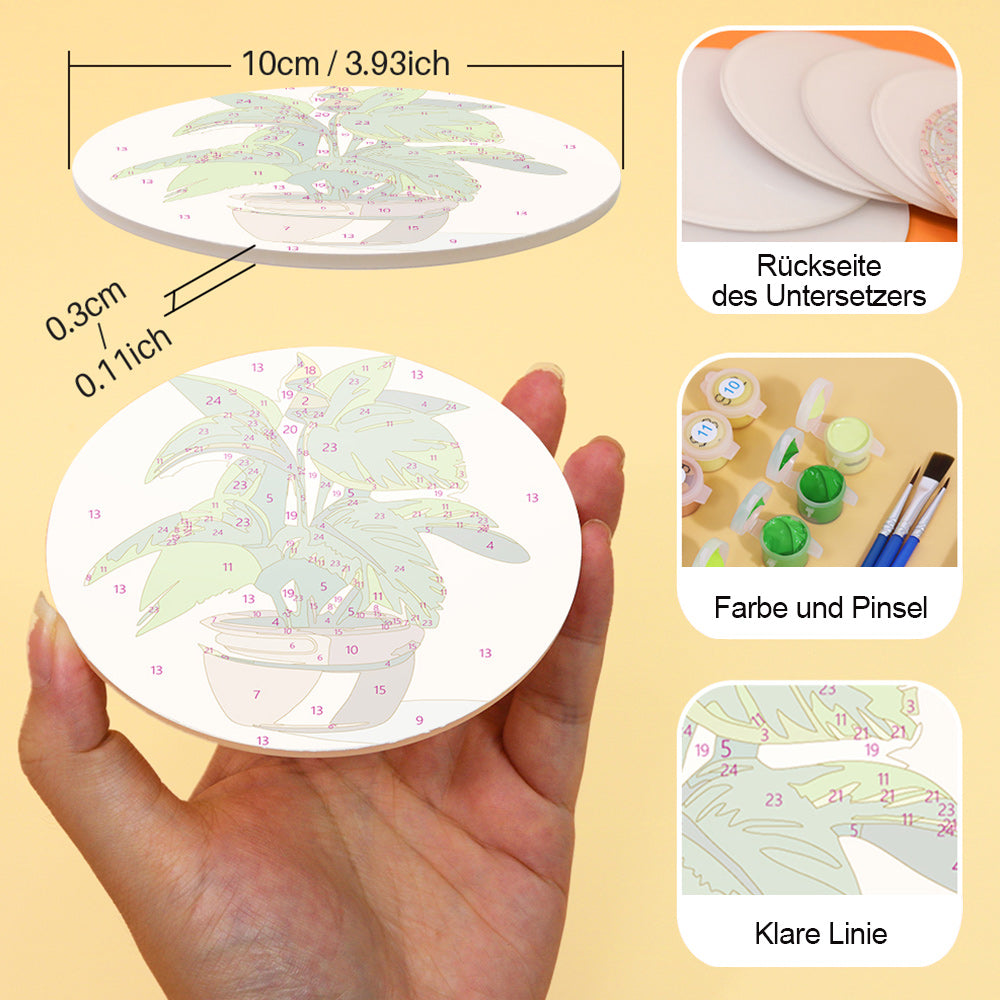 6 Stück Untersetzer mit Tropischen Topfpflanzen Malen nach Zahlen