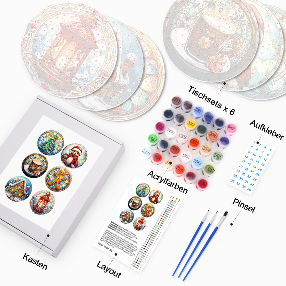 6 Stück Weihnachts-Lebkuchenmann Tischsets Malen nach Zahlen