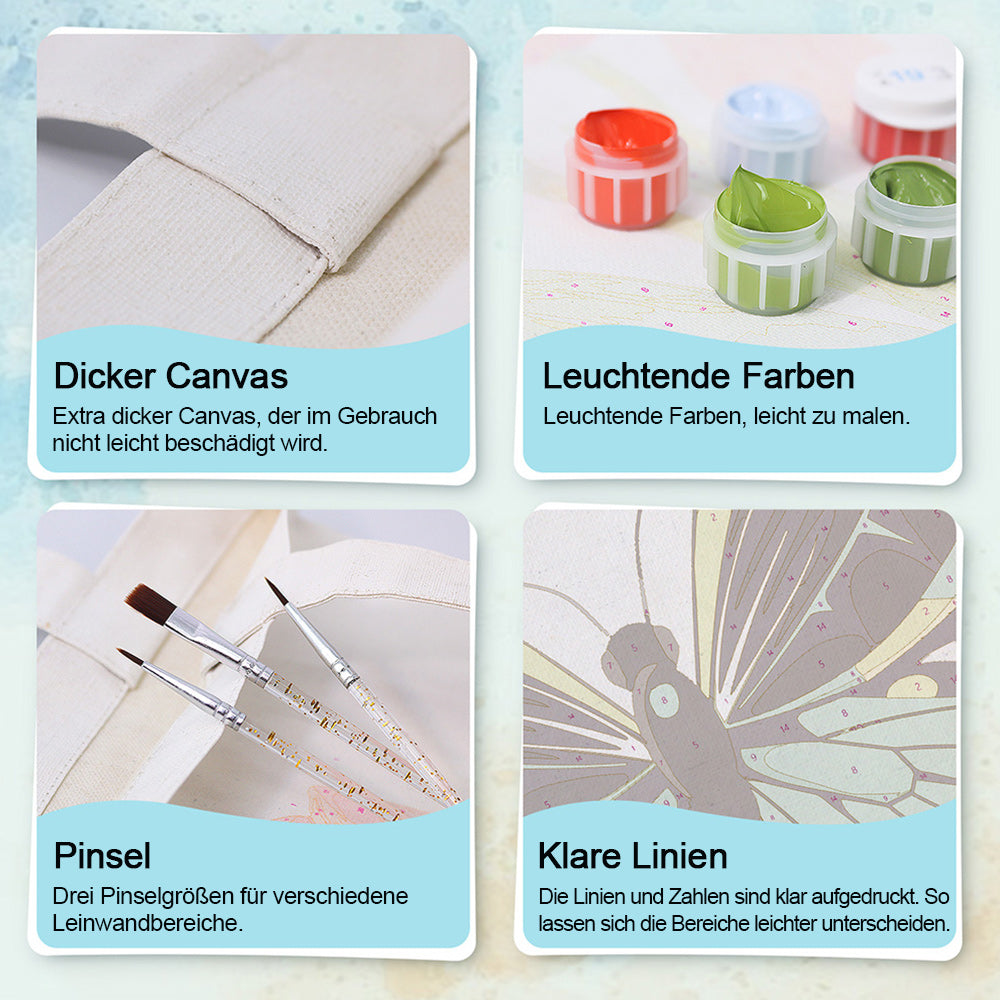 Ein Grüner Schmetterling Leinwand Tragetasche Malen nach Zahlen