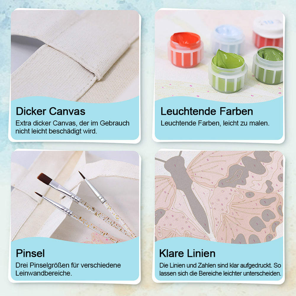 Das Malen-nach-Zahlen-Set enthält alles, was Sie für Ihr eigenes Kunstwerk benötigen: