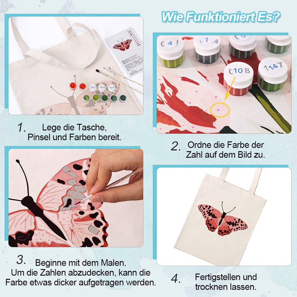 Ein Rosa Schmetterling mit Schwarzen Flecken Leinwand Tragetasche Malen nach Zahlen
