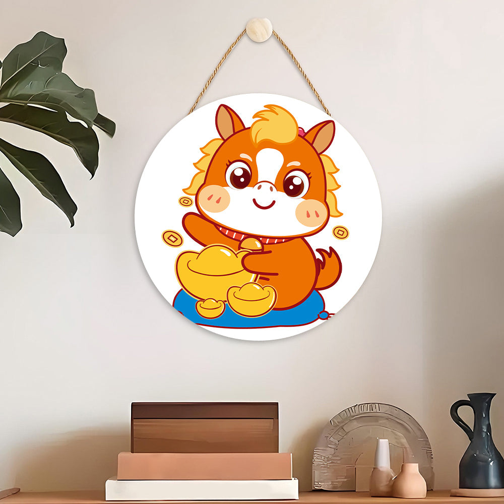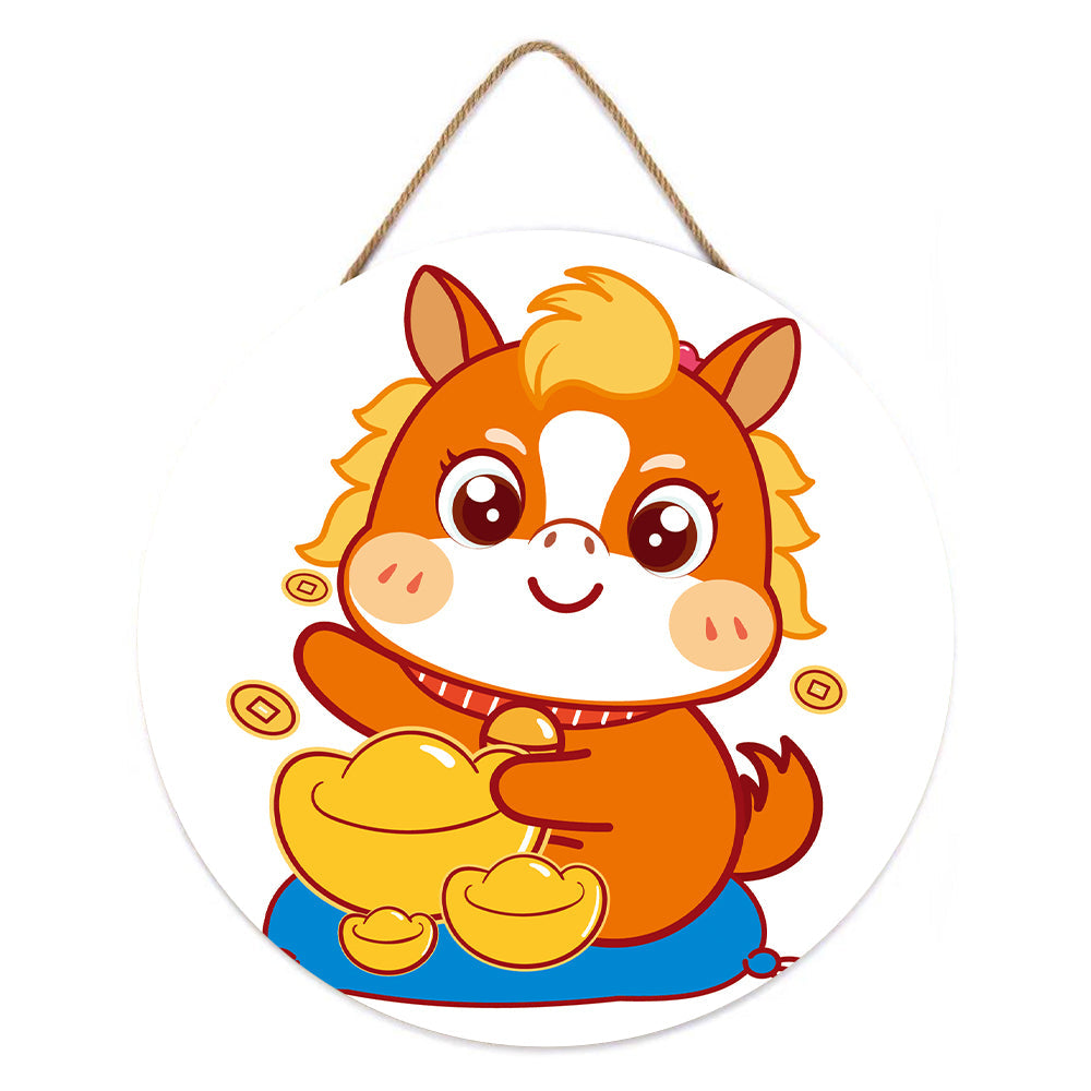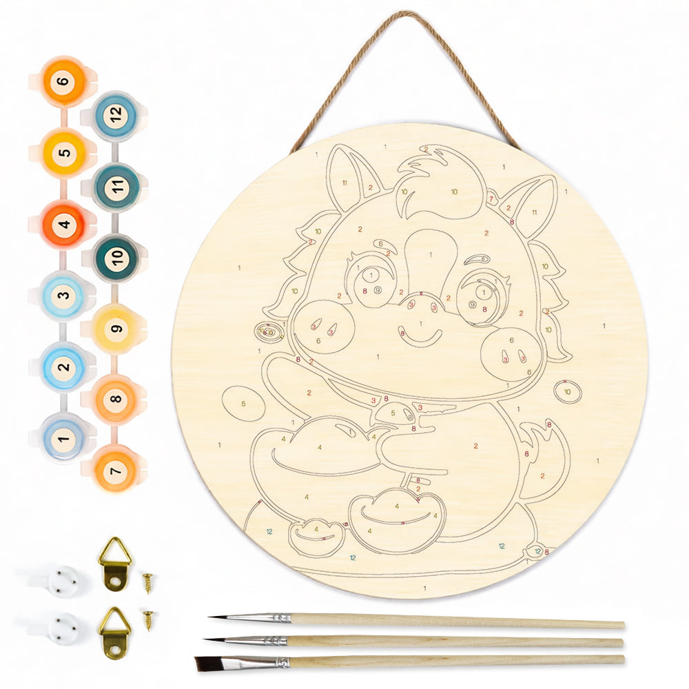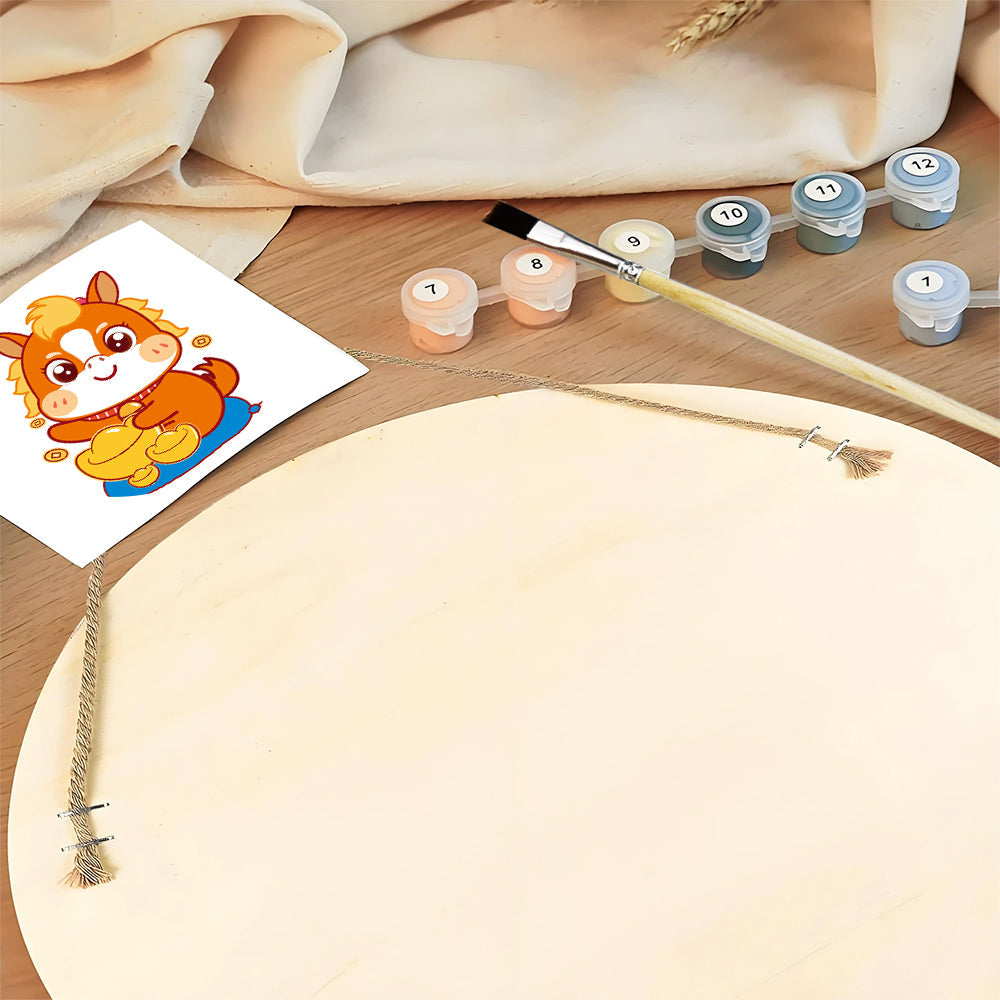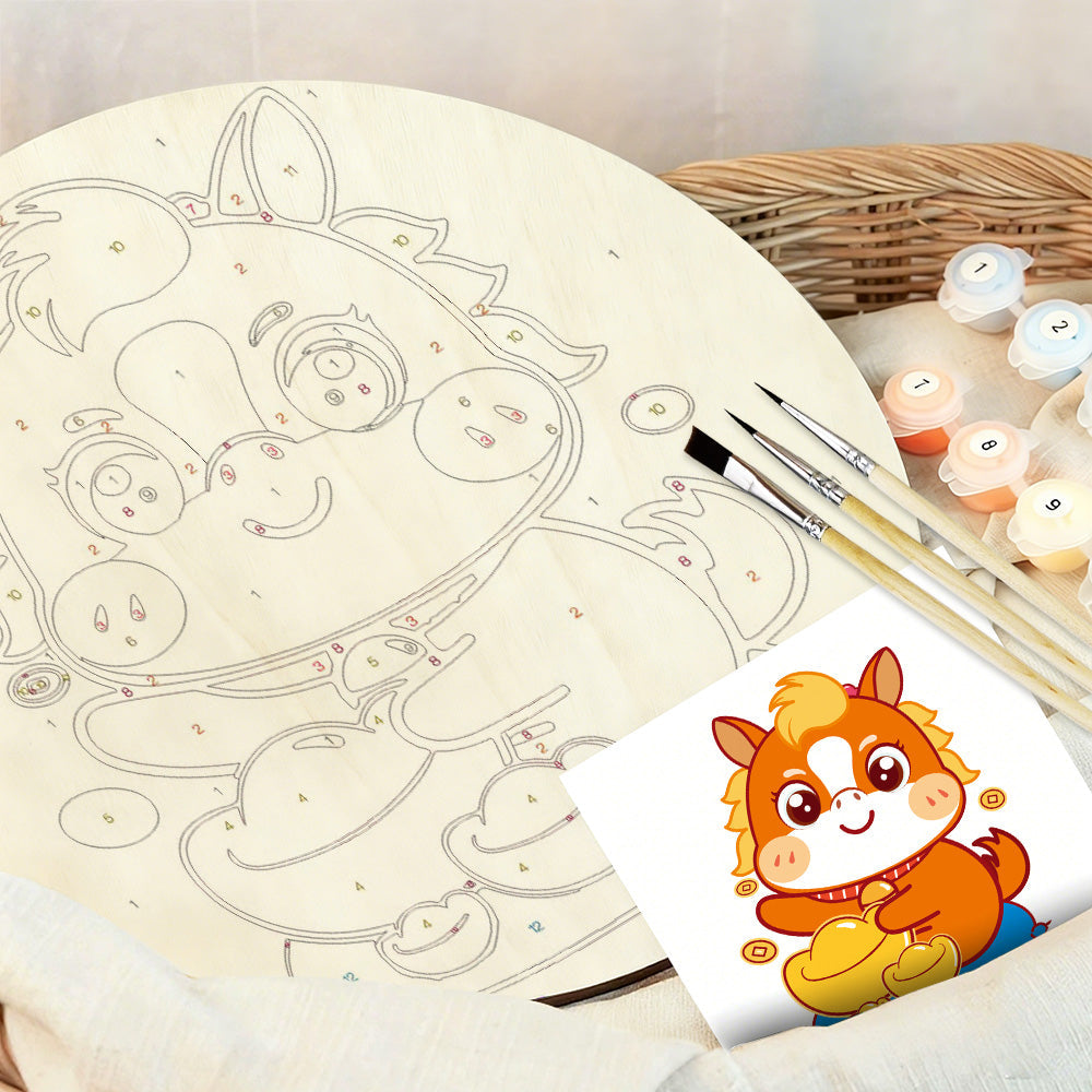 Malen nach Zahlen auf Holzscheibe - Goldbarren des Jahres des Pferdes