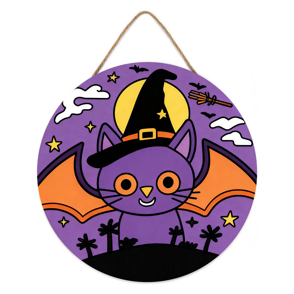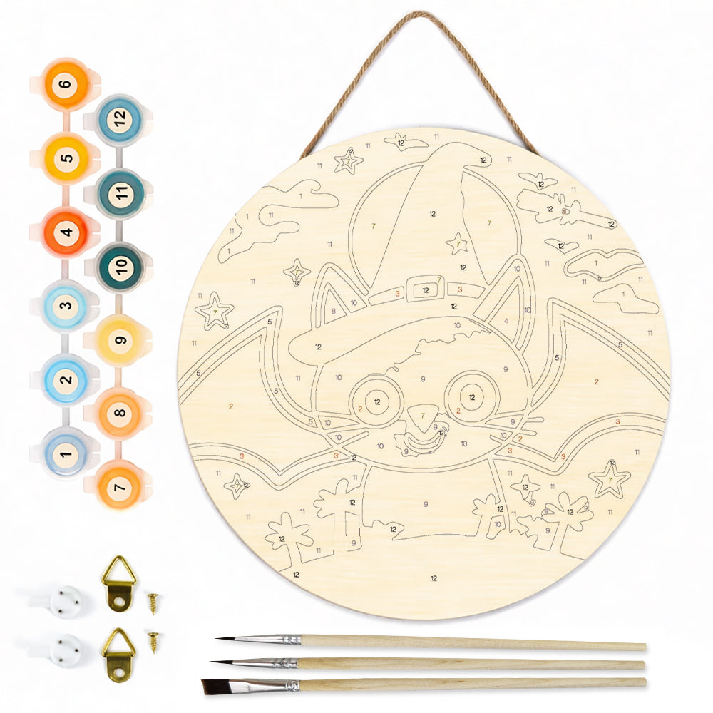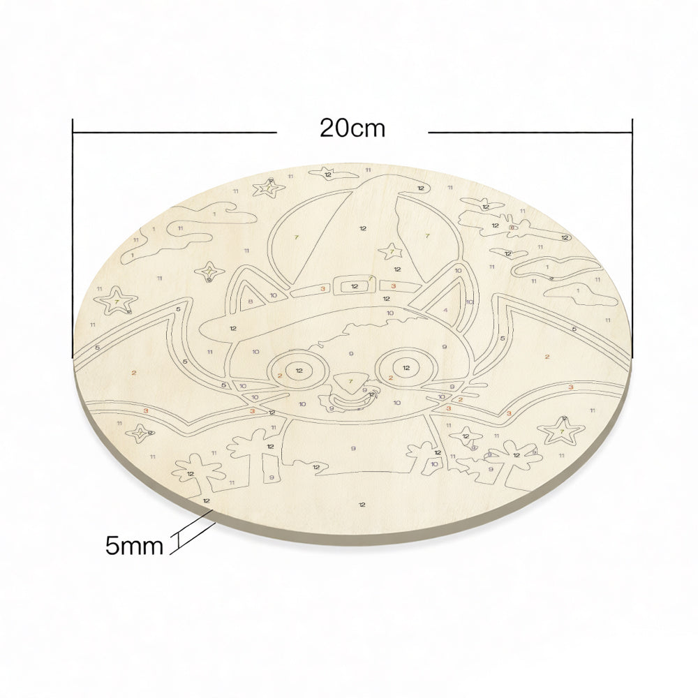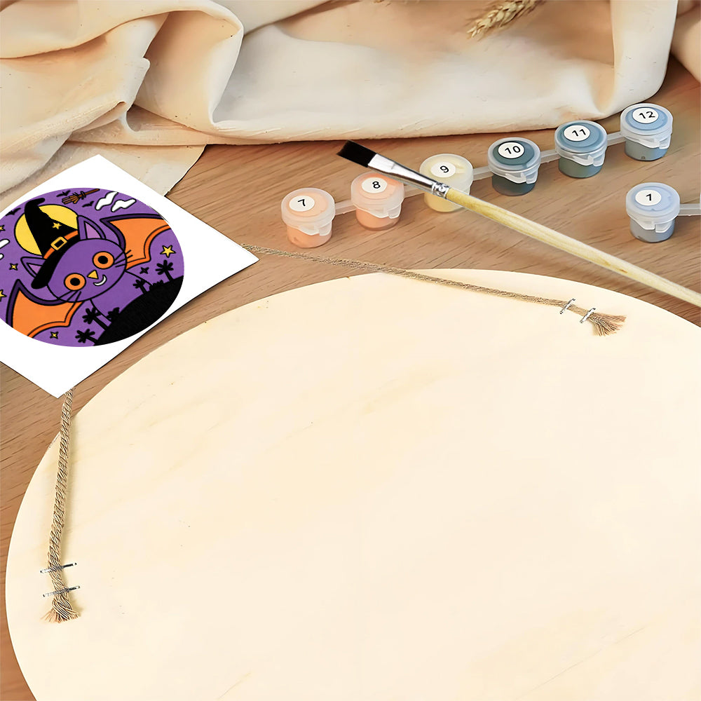 Malen nach Zahlen auf Holzscheibe - Halloween Lila Fledermaus-Katze