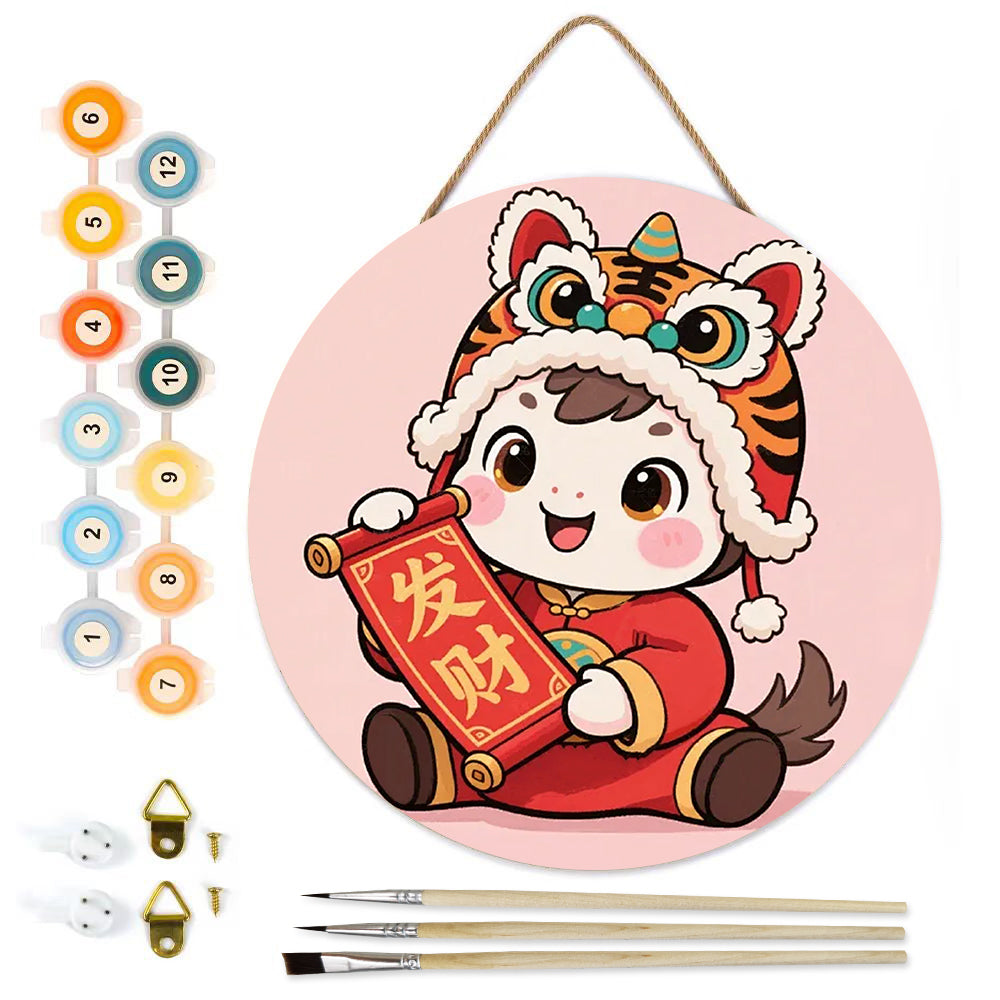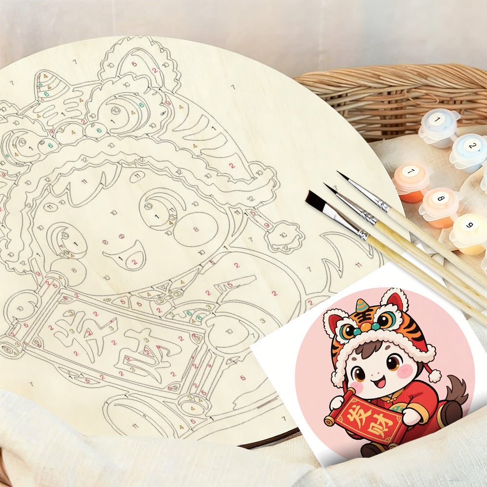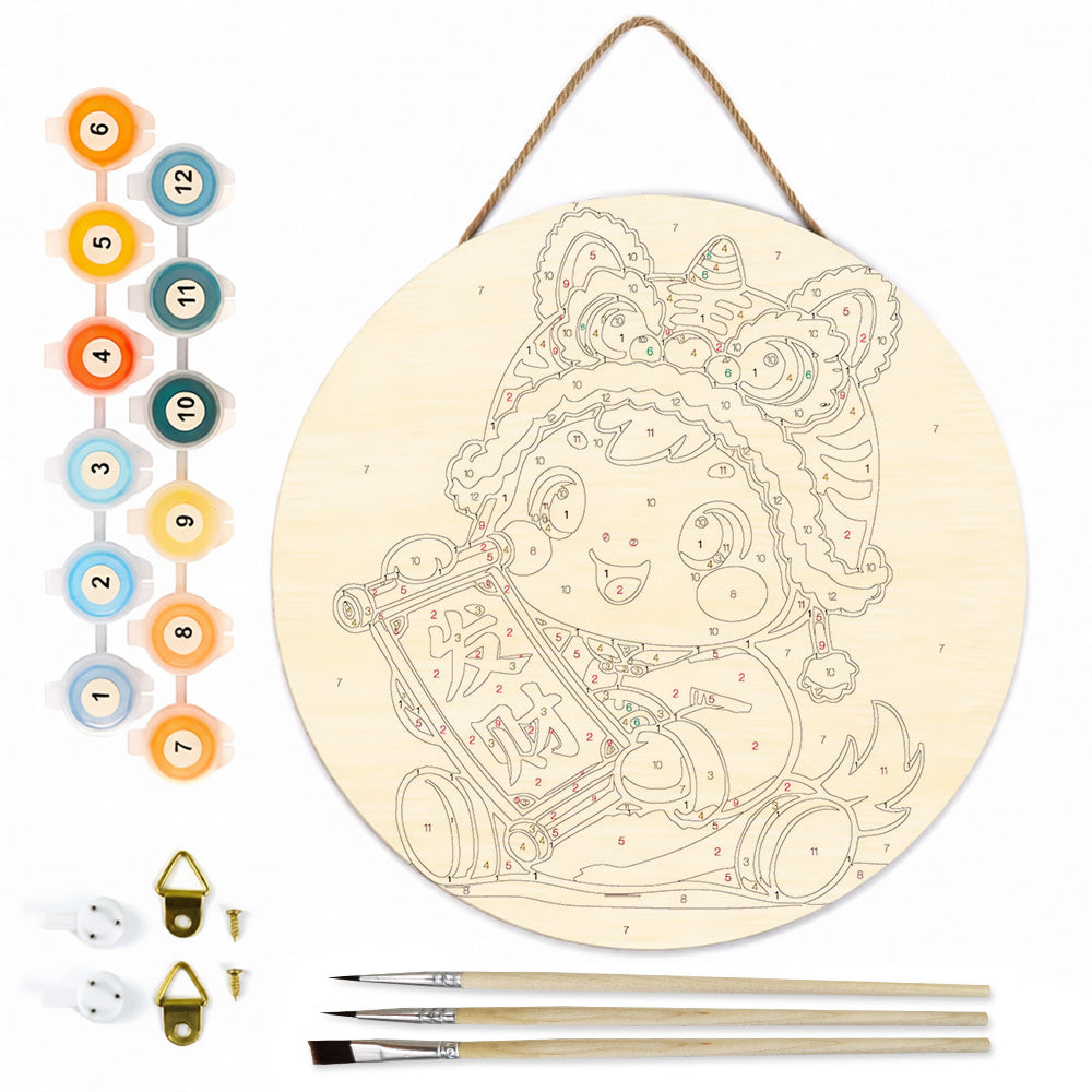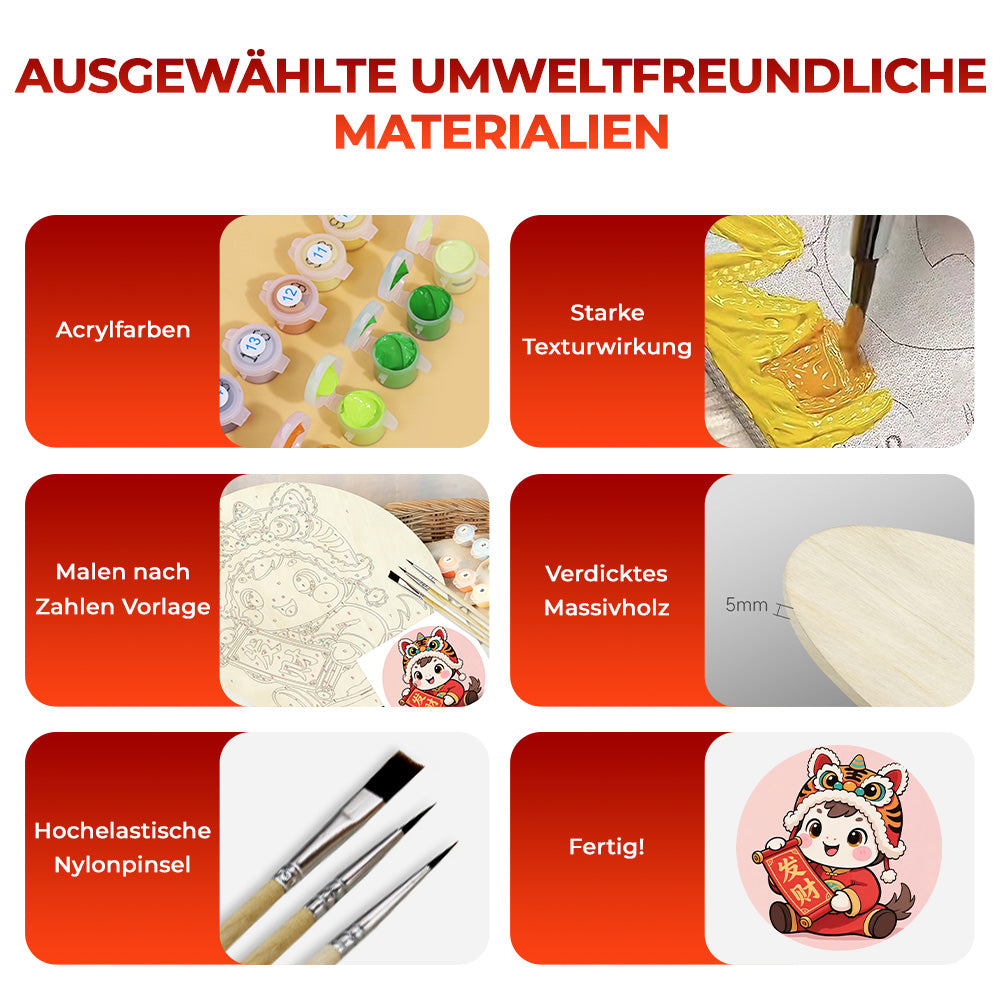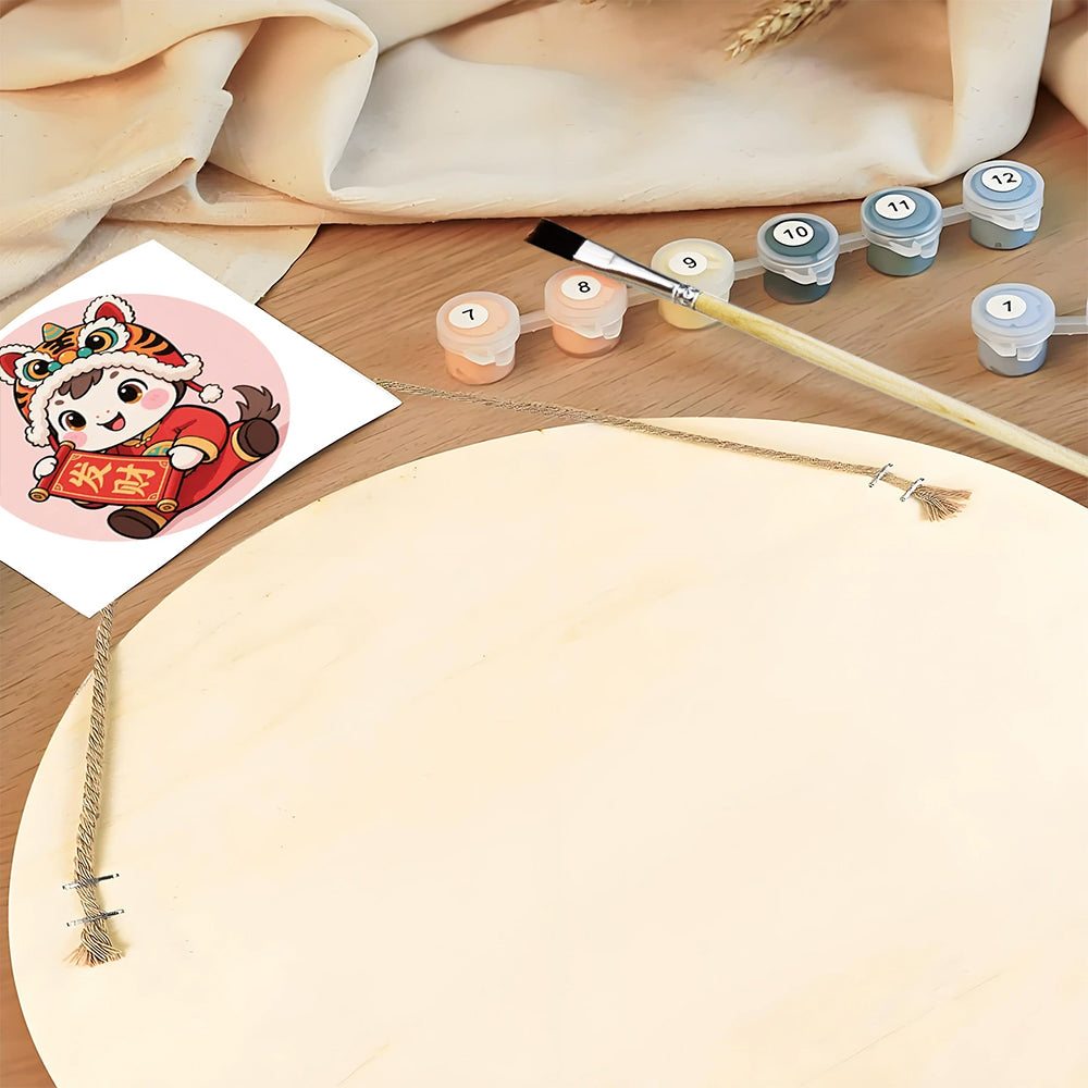 Malen nach Zahlen auf Holzscheibe - Maskottchen des Jahres des Pferdes