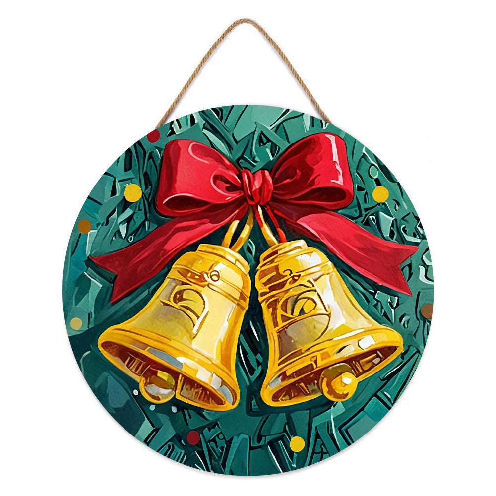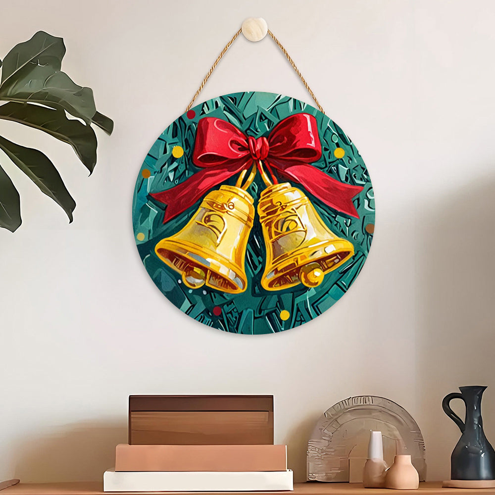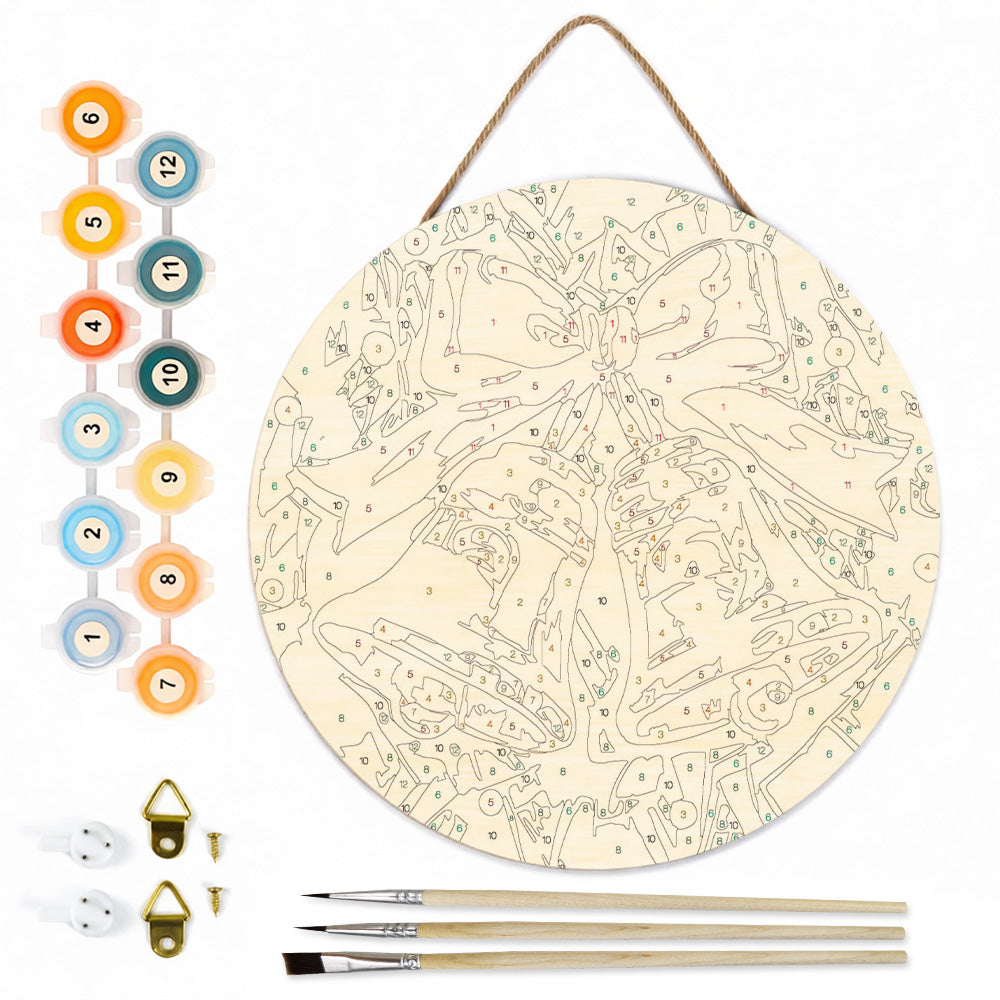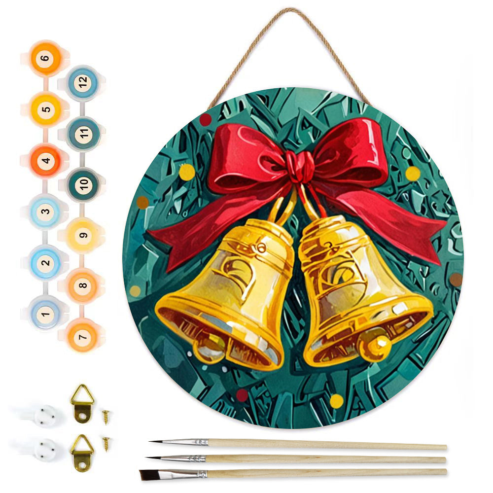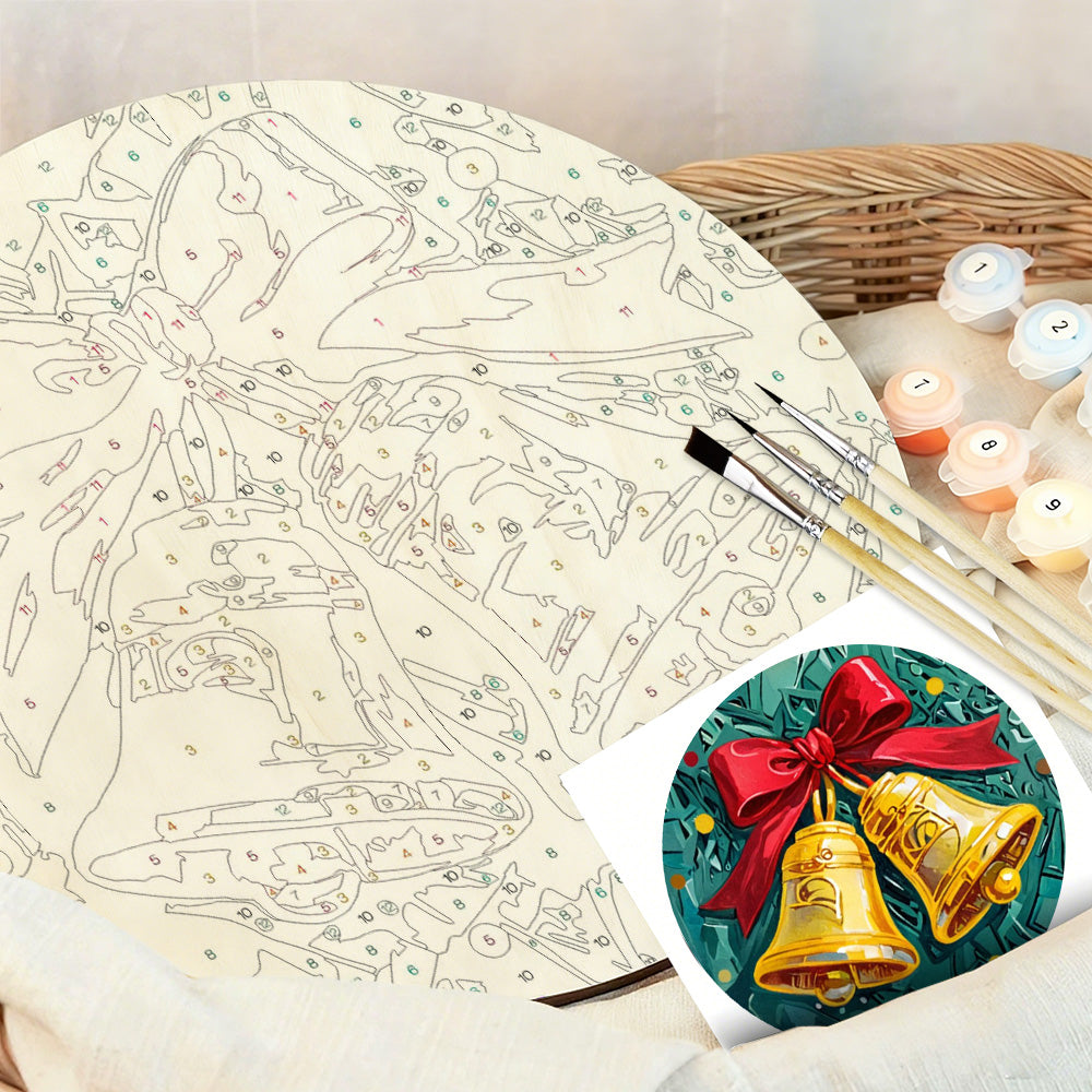 Malen nach Zahlen auf Holzscheibe - Weihnachtsglocken am Weihnachtsbaum