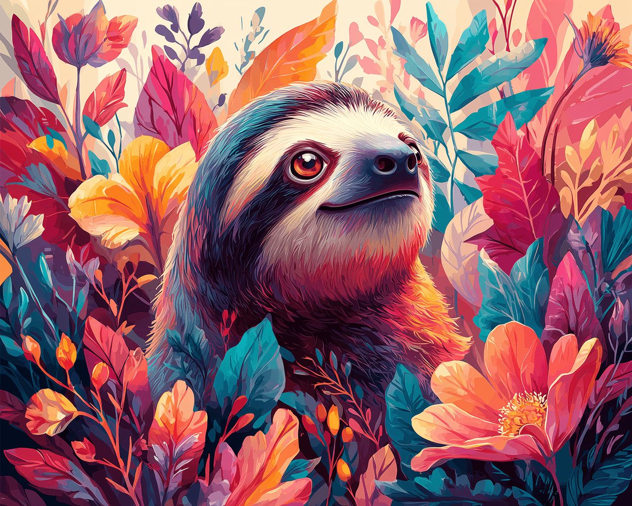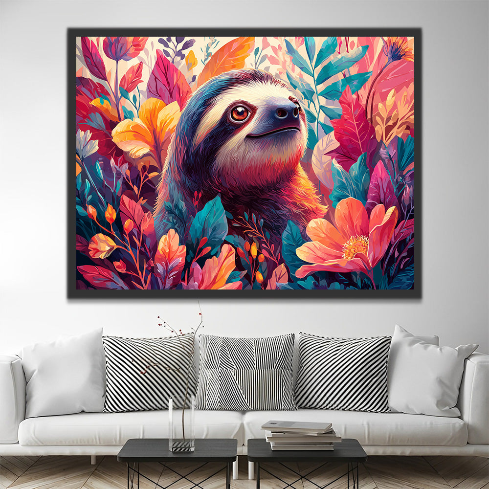 Faultier in den Blumen Malen nach Zahlen