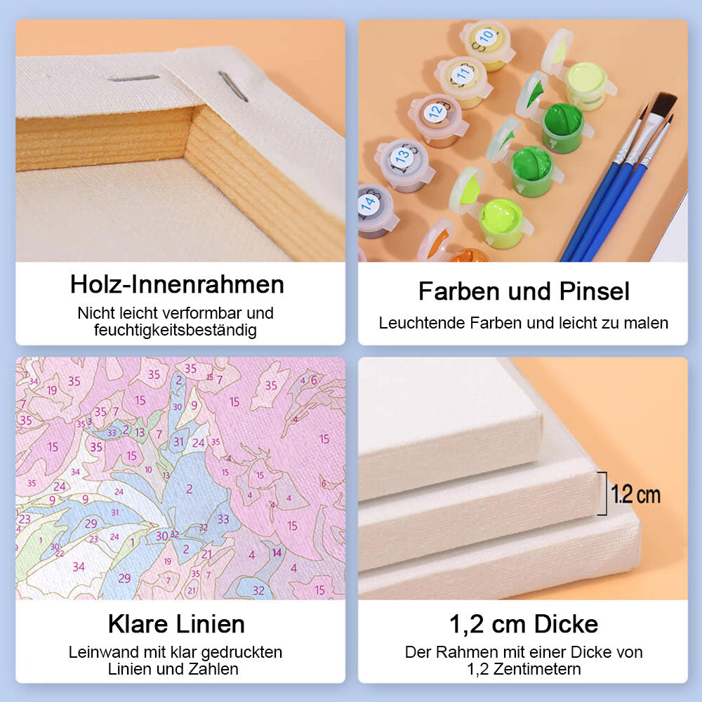 DIY Malen nach Zahlen - Für alle Schwierigkeitsgrade geeignet. Es reduziert Stress und fördert die Konzentration, indem es von Bildschirmen und Elektronik ablenkt. Ein lehrreiches Spielzeug, um die Koordinationsfähigkeiten zu verbessern.