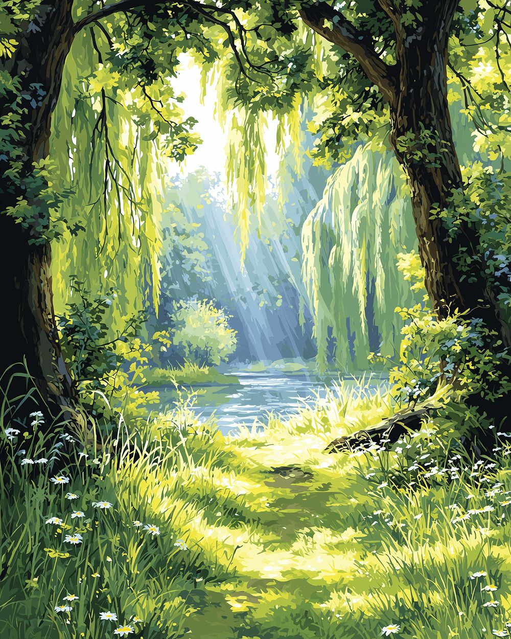 Sonnenlicht im grünen Wald Malen nach Zahlen