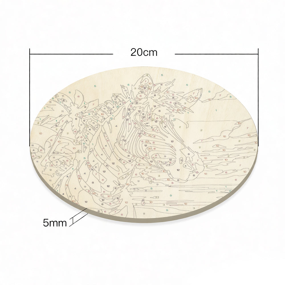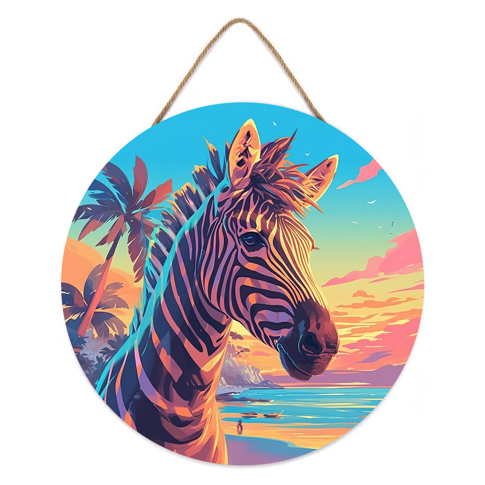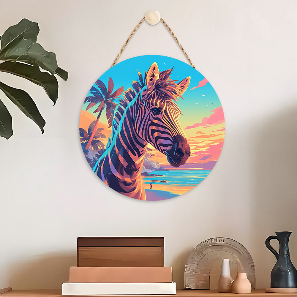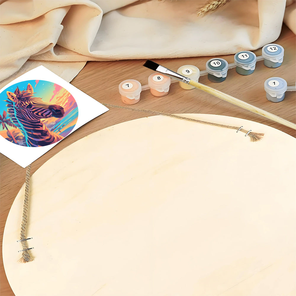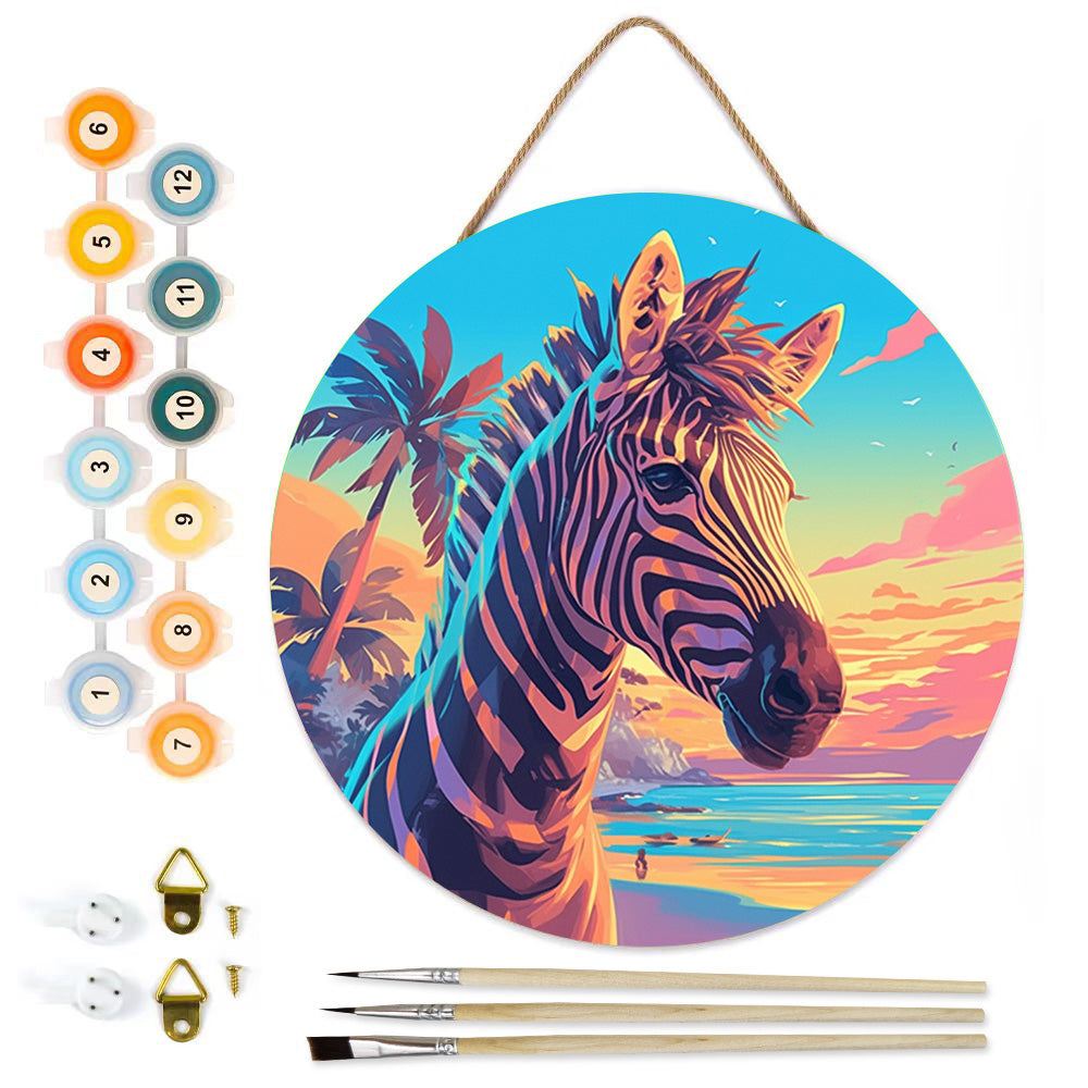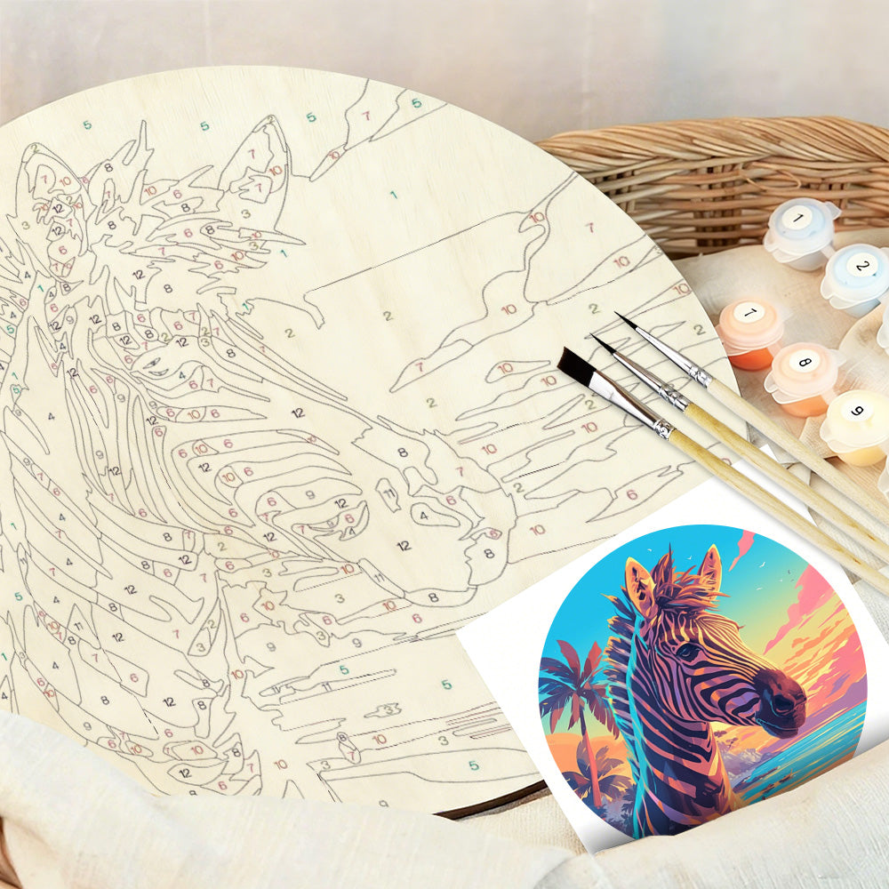 Malen nach Zahlen auf Holzscheibe - Zebra am Strand