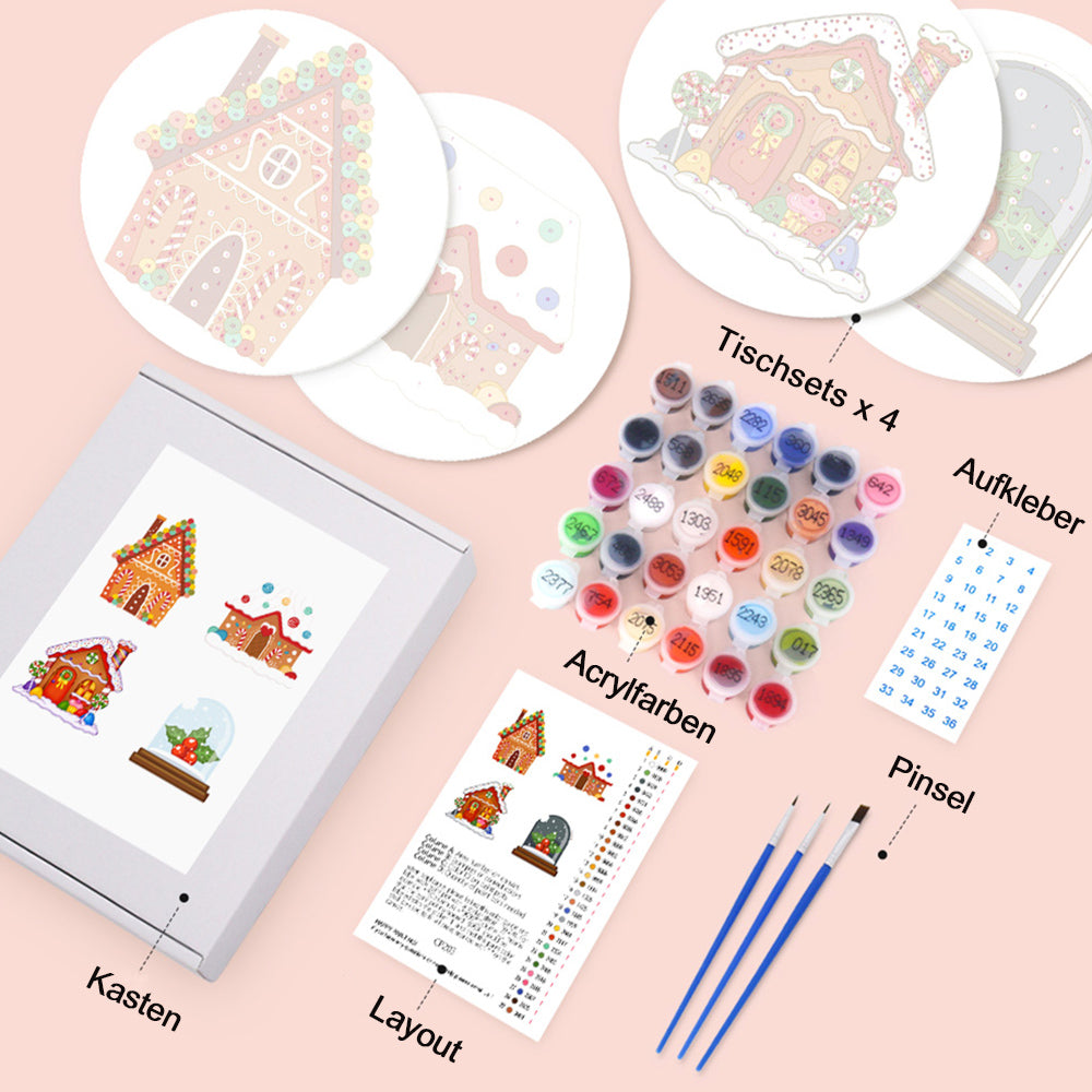 4 Stück Cartoon Weihnachtsburg Tischsets Malen nach Zahlen