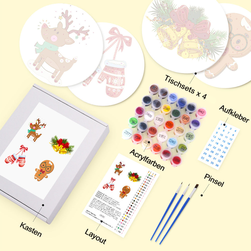 4 Stück Weihnachtshandschuhe und Glocken Tischsets Malen nach Zahlen