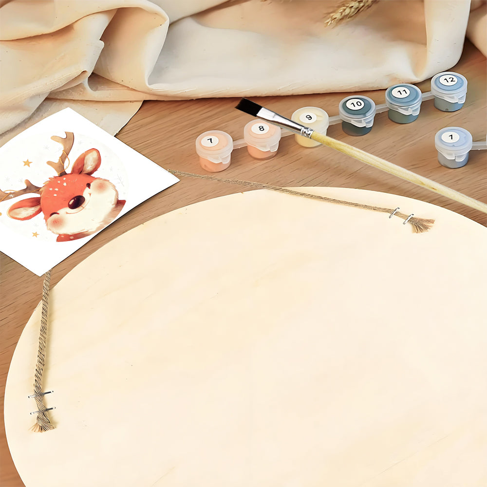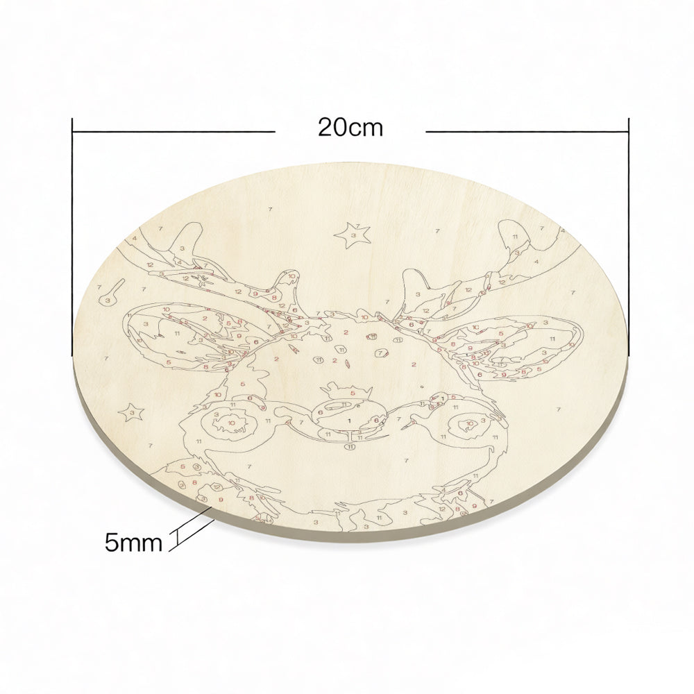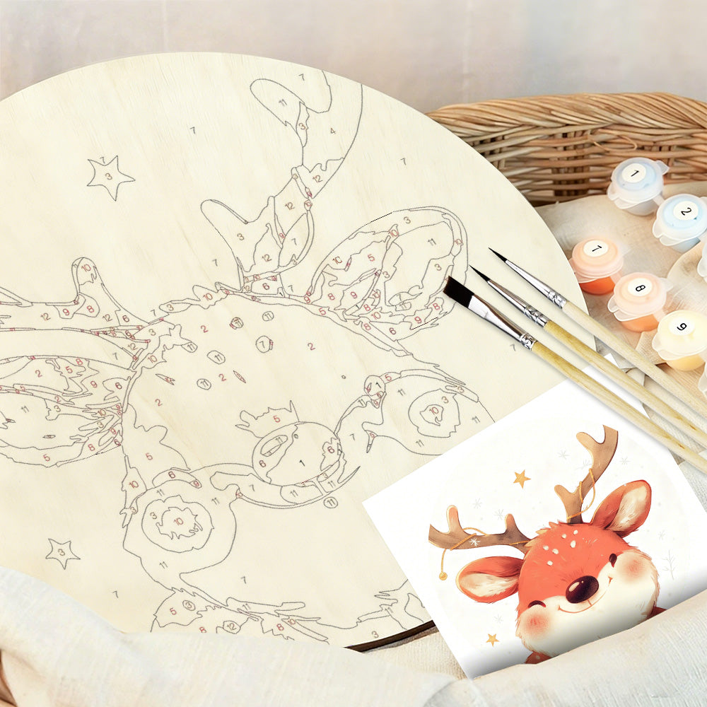 Malen nach Zahlen auf Holzscheibe - Süßes Weihnachtsrentier
