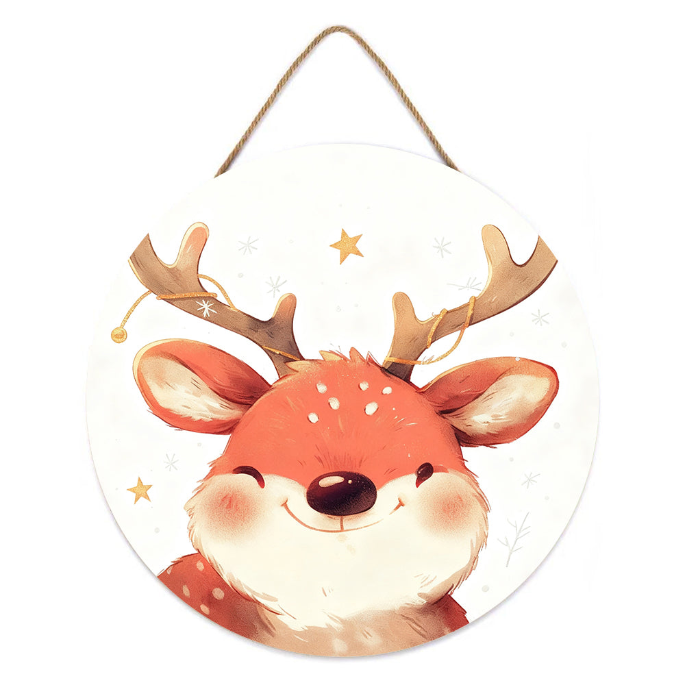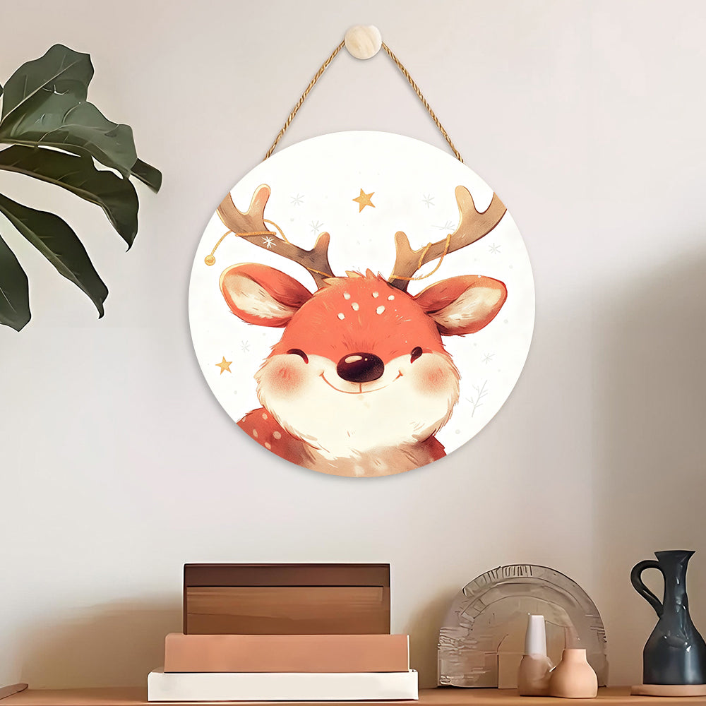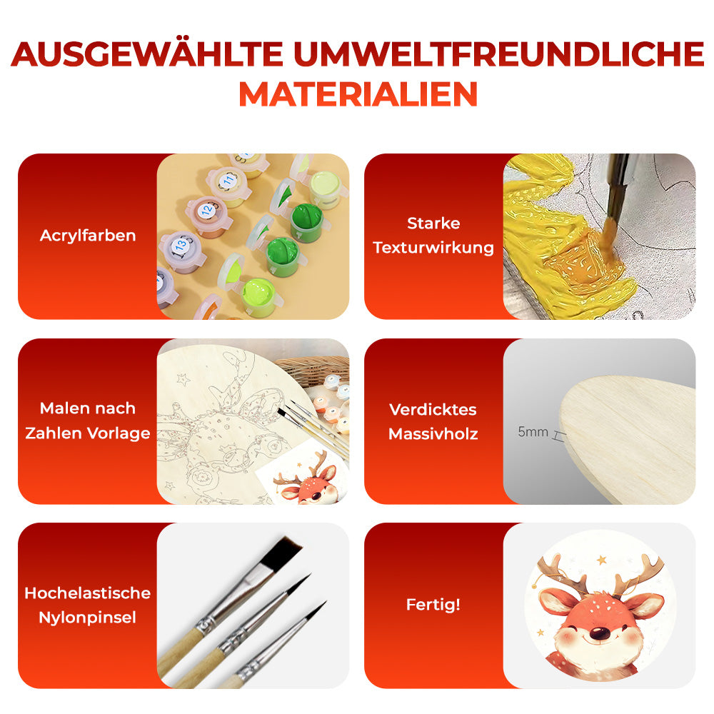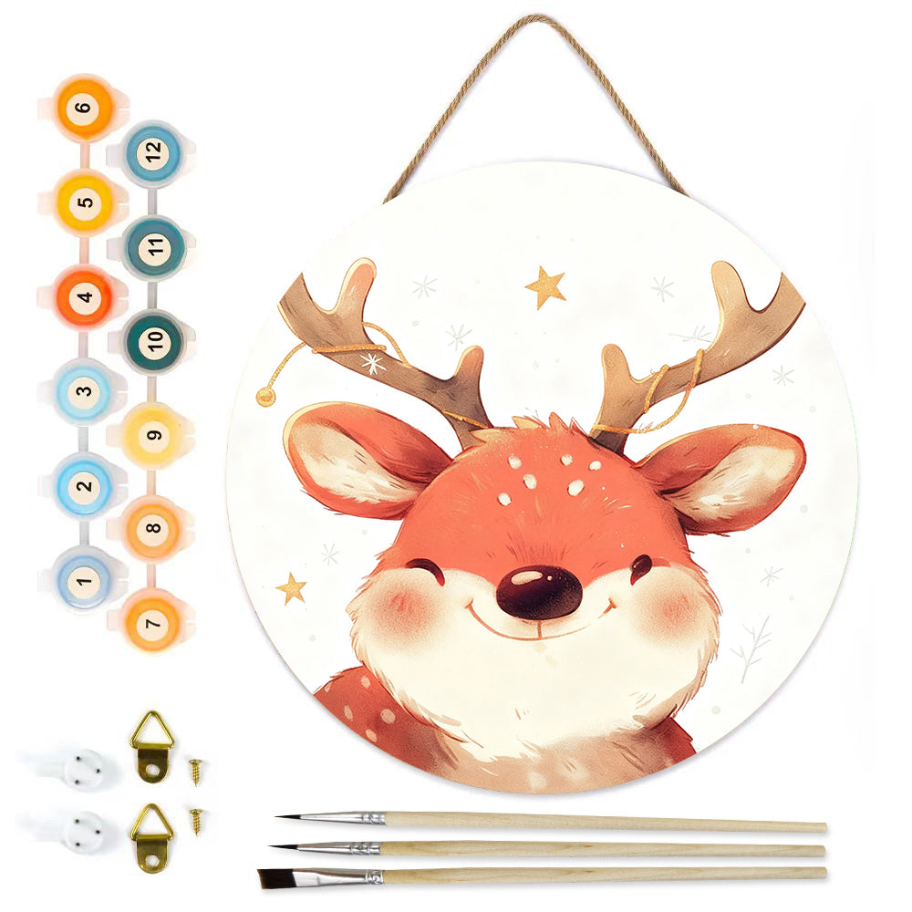 Malen nach Zahlen auf Holzscheibe - Süßes Weihnachtsrentier