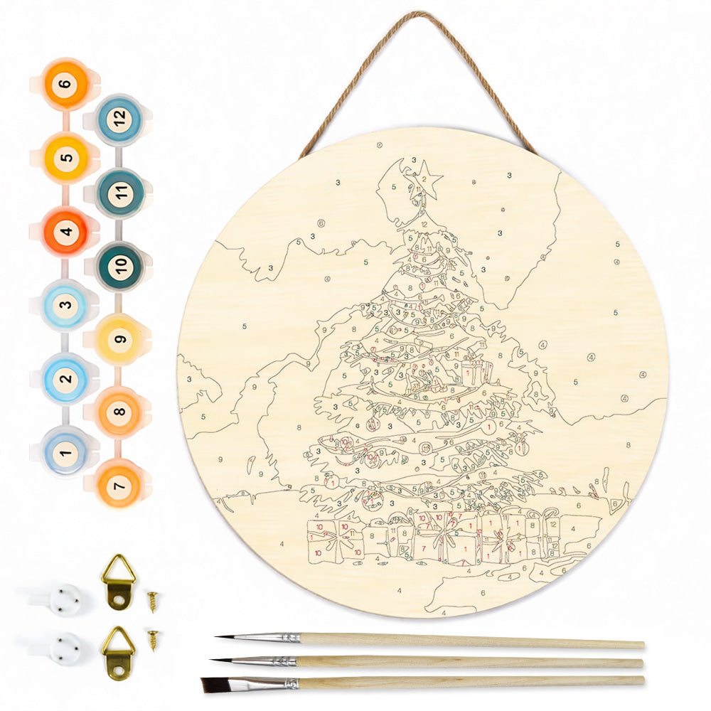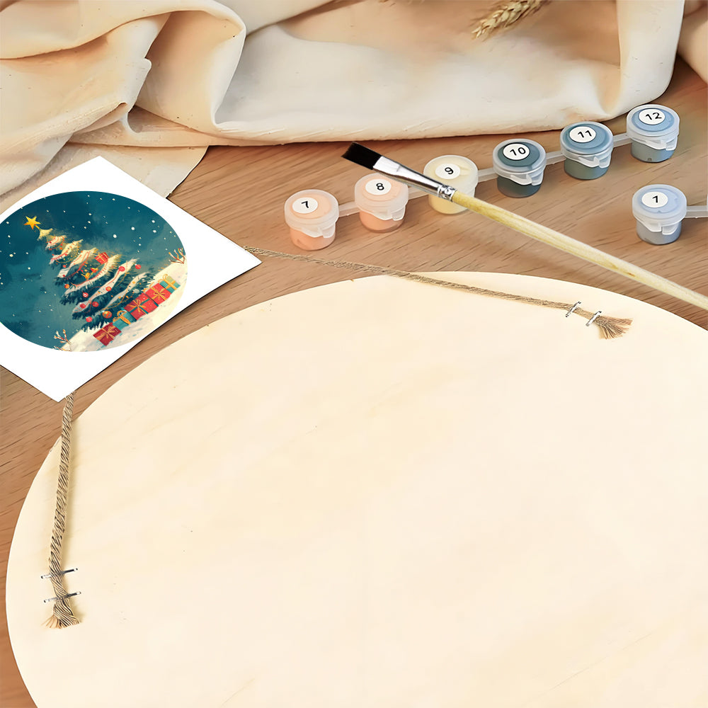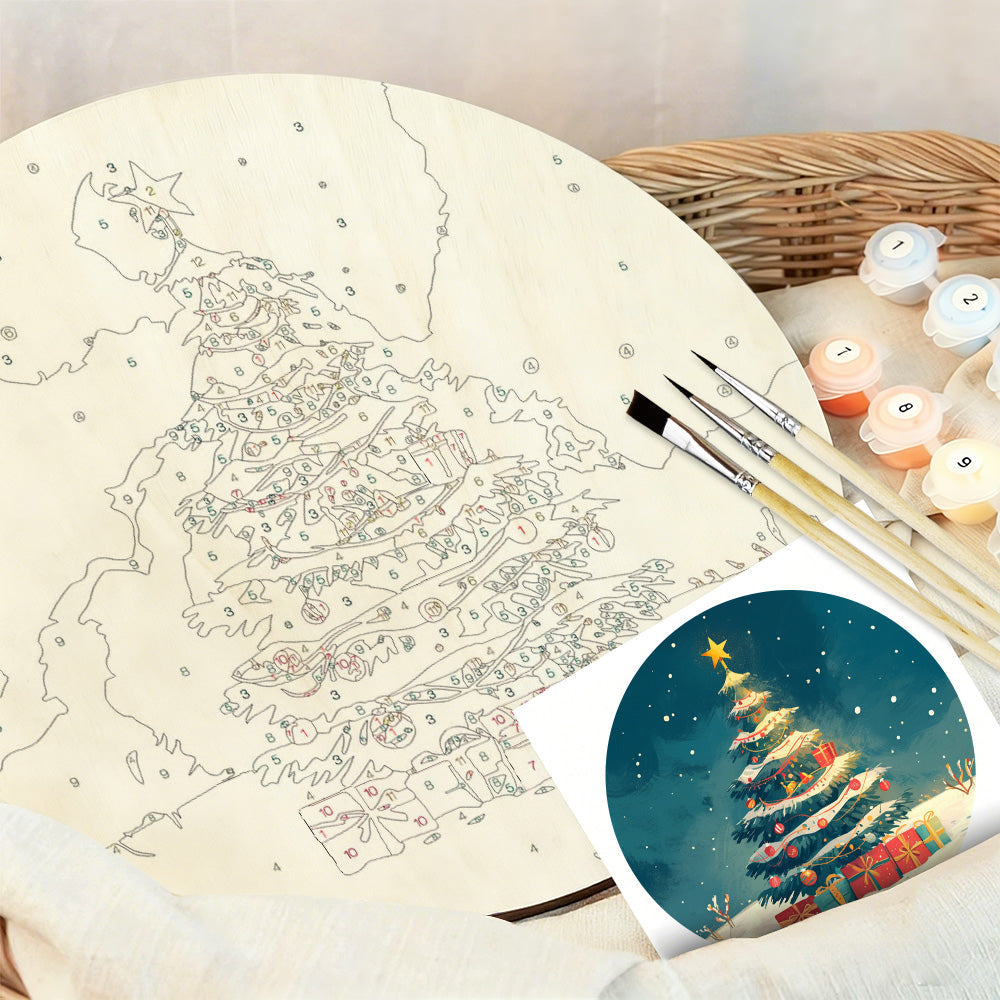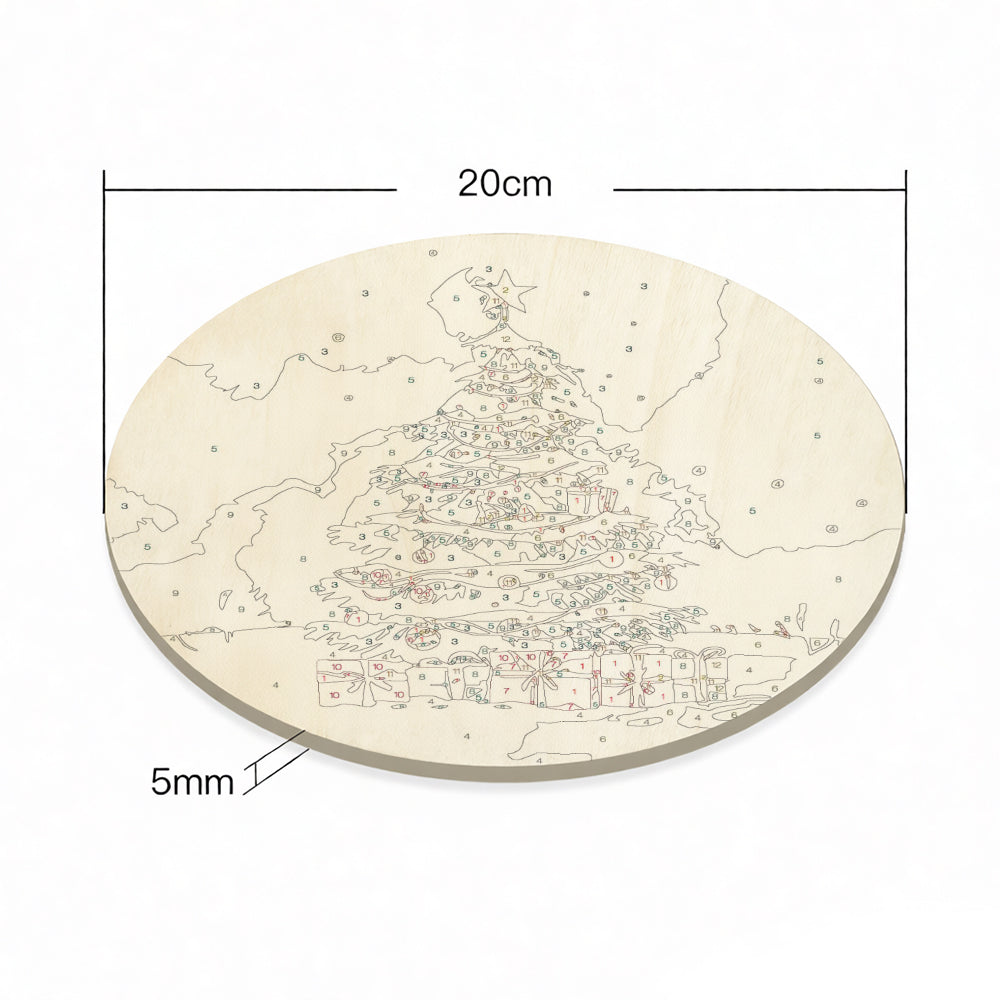 Malen nach Zahlen auf Holzscheibe - Weihnachtsbaum und Geschenke