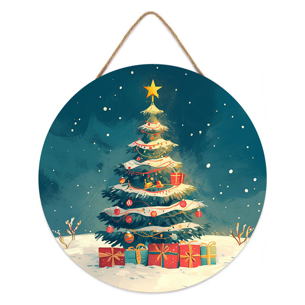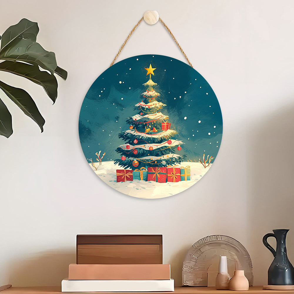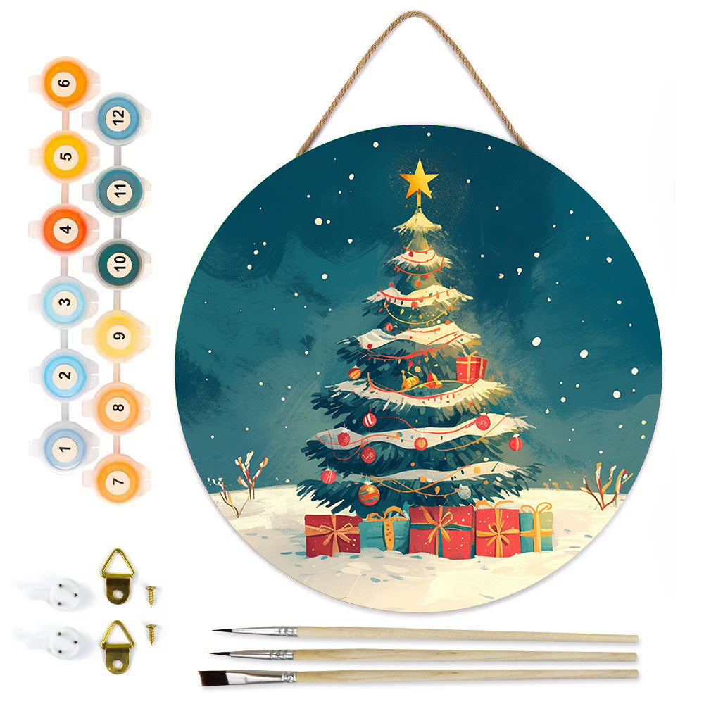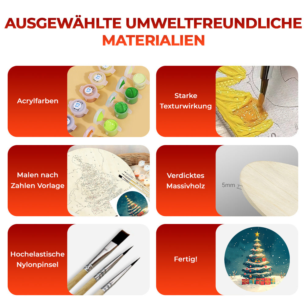 Malen nach Zahlen auf Holzscheibe - Weihnachtsbaum und Geschenke