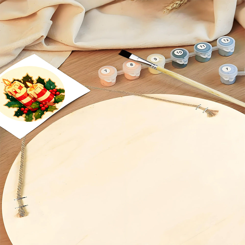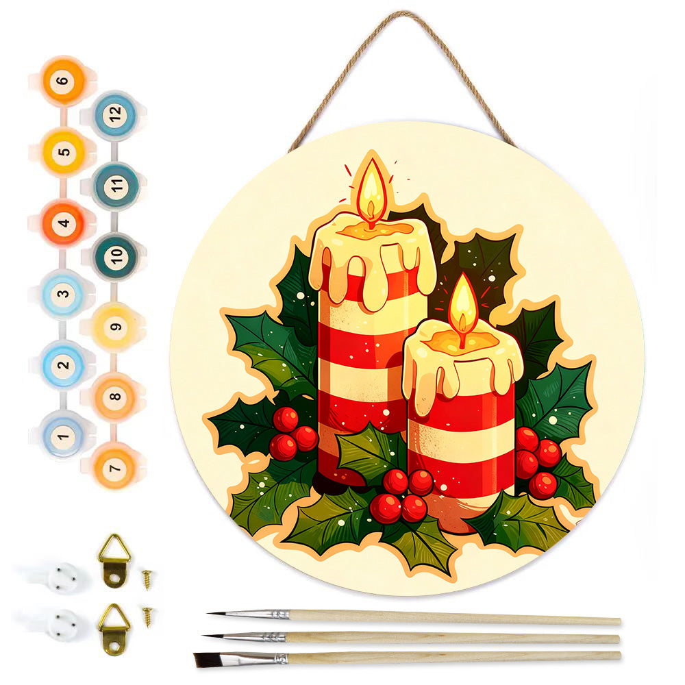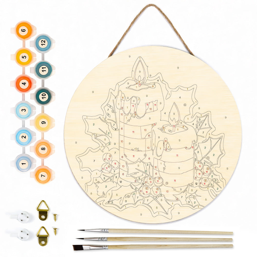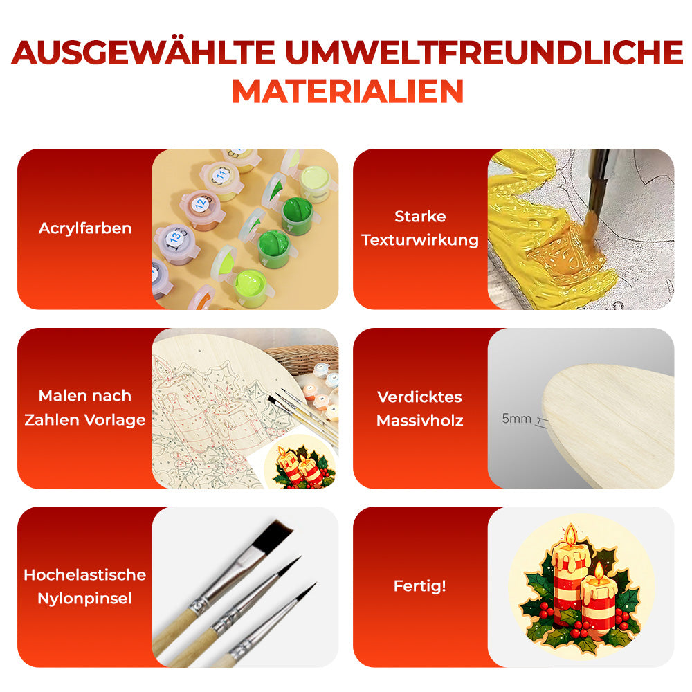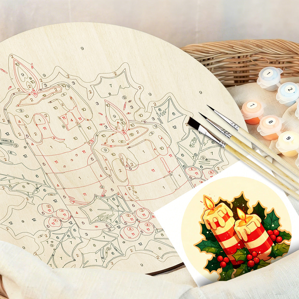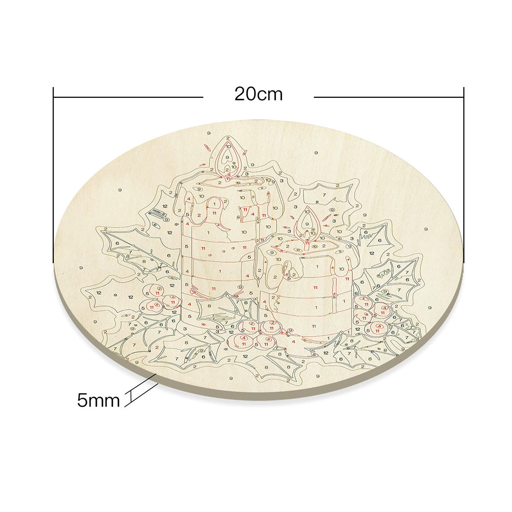 Malen nach Zahlen auf Holzscheibe - Weihnachtskerzen